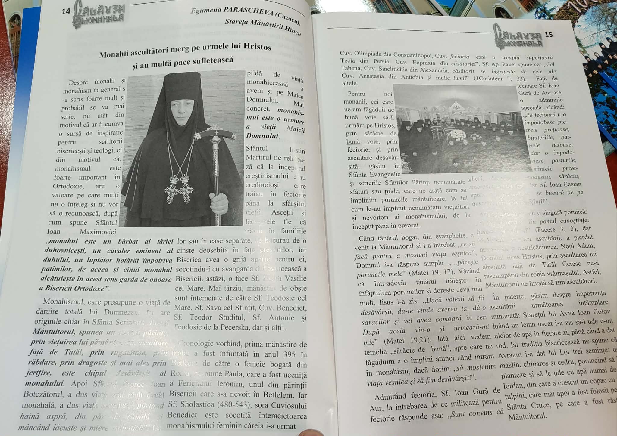 Amintim că această publicaţie apare cu binecuvântarea şi străduinţa Înaltpreasfinţitului PETRU, Arhiepiscop de Ungheni şi Nisporeni, ca urmare a grijii arhiereşti sporite, dar şi a dragostei părinteşti pe care Înaltpreasfinţia Sa o poartă faţă de nevoitorii obştelor monahale a Sfintelor Mănăstiri din cuprinsul Eparhiei. E de remarcat faptul că această revistă este unica de acest fel în ţara noastră.