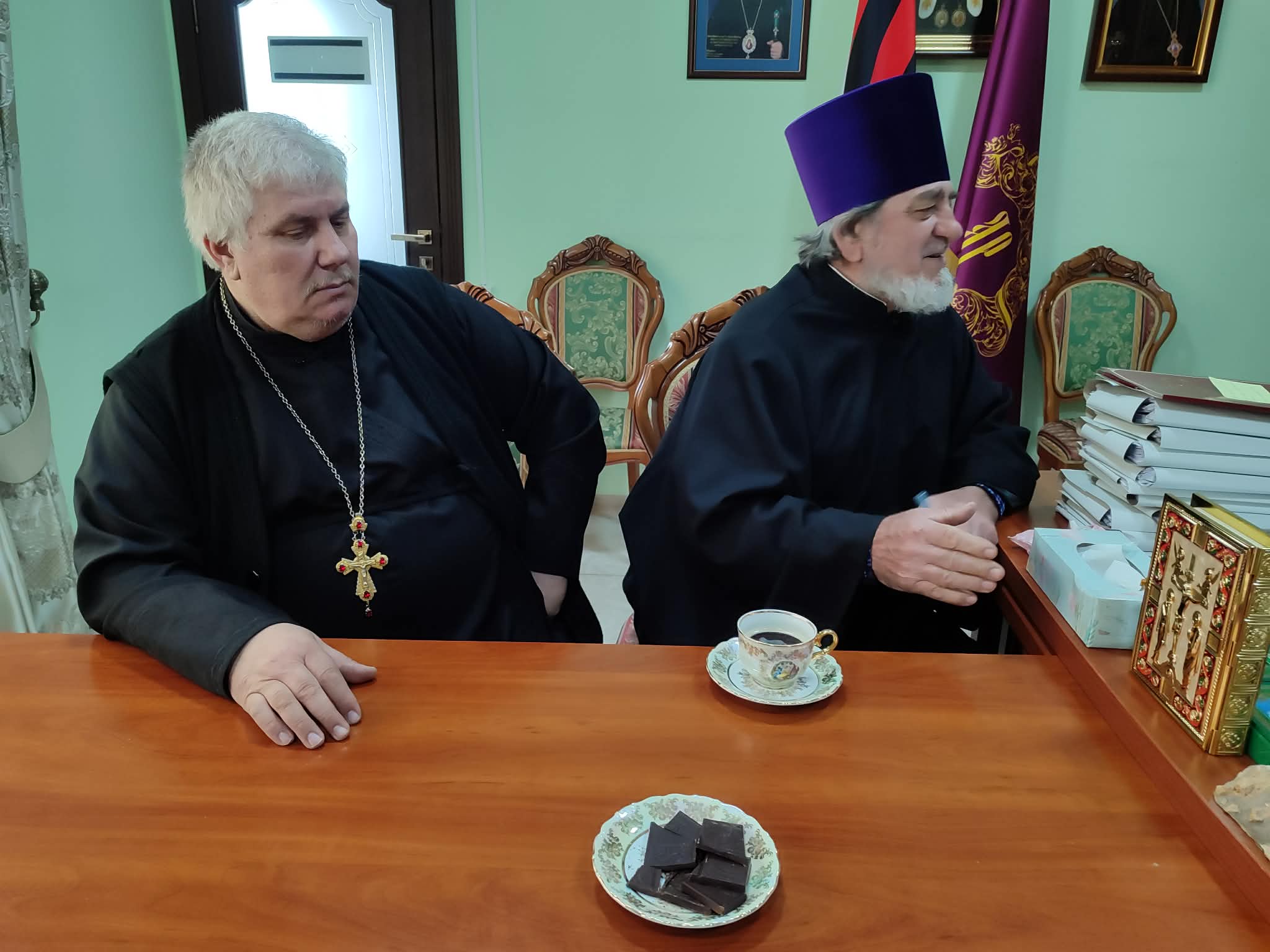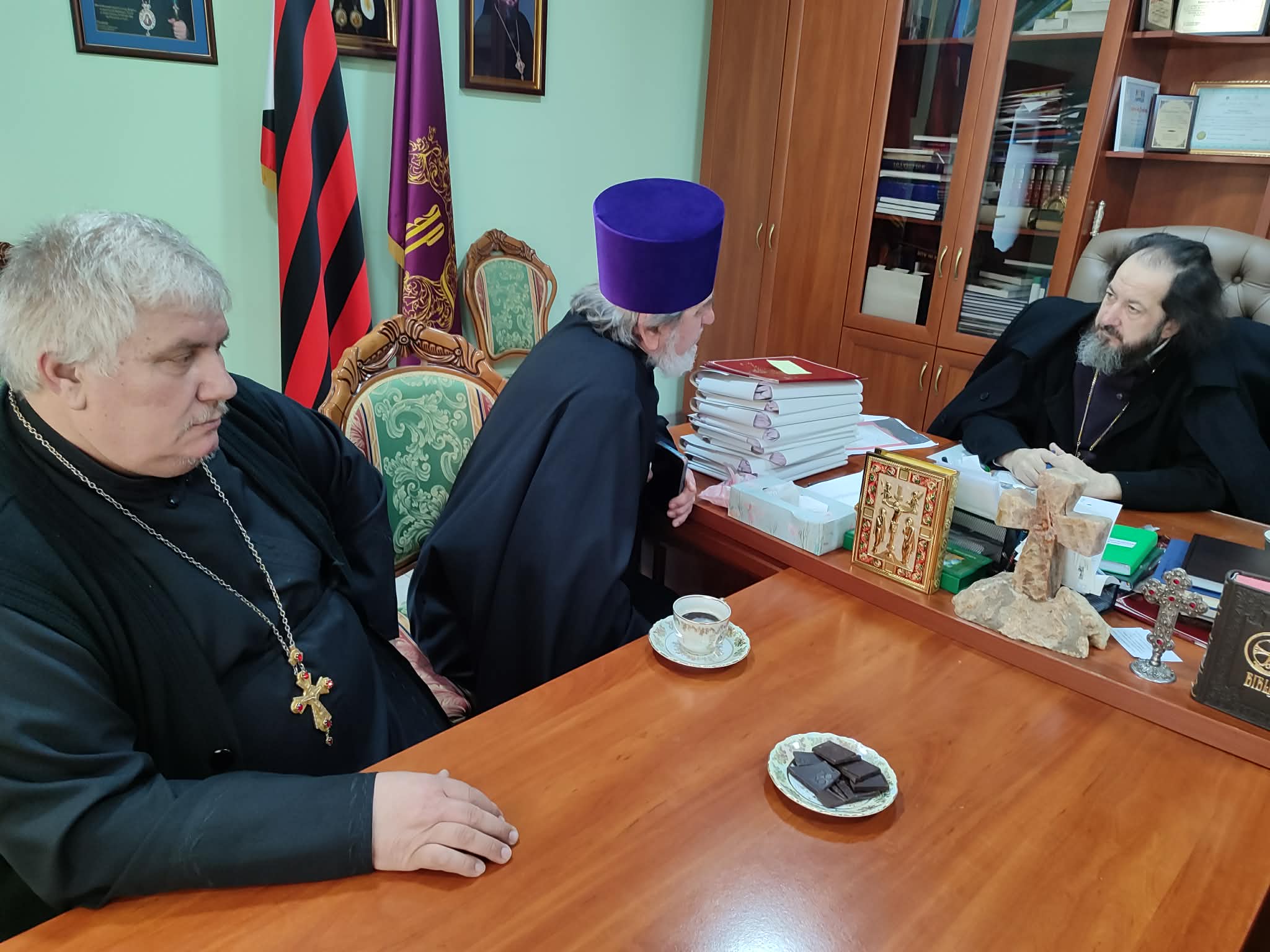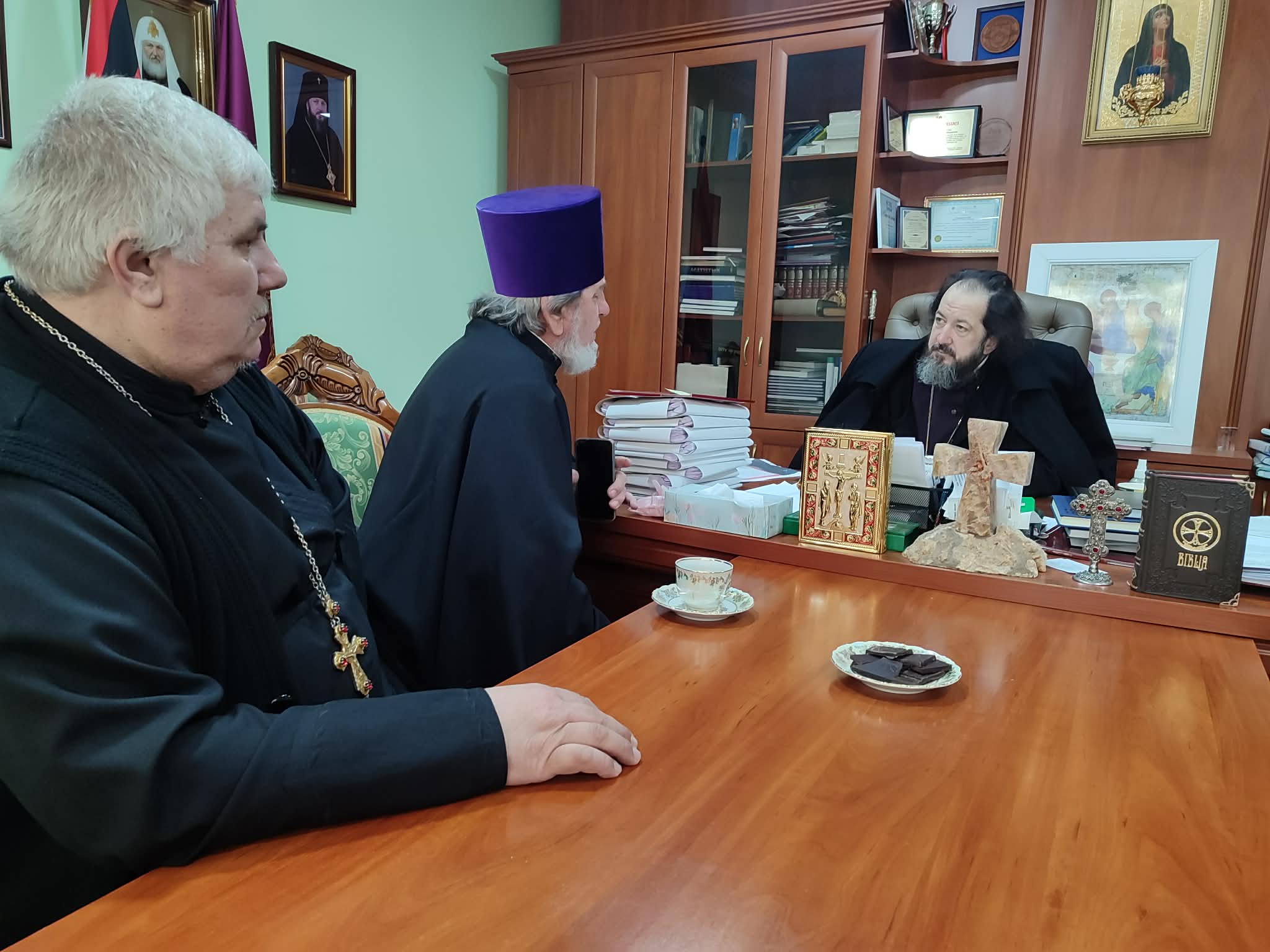Printre cei prezenți menționăm Prot. Mihail TROFIM, parohul bisericii „Sf. Arhangheli Mihail și Gavriil” din s. Bujor, rn. Hîncești și prot. Mihail FODOR, parohul bisericii „Sf. Arhangheli Mihail și Gavriil ” din s. Leușeni, rnl. Hîncești, care au discutat cu Ierarhul diverse întrebări și probleme de ordin administrativ și duhovnicesc legate de activitatea parohiilor menționate.