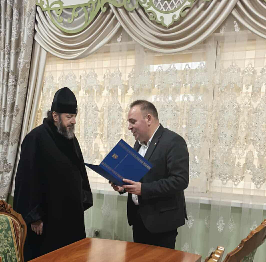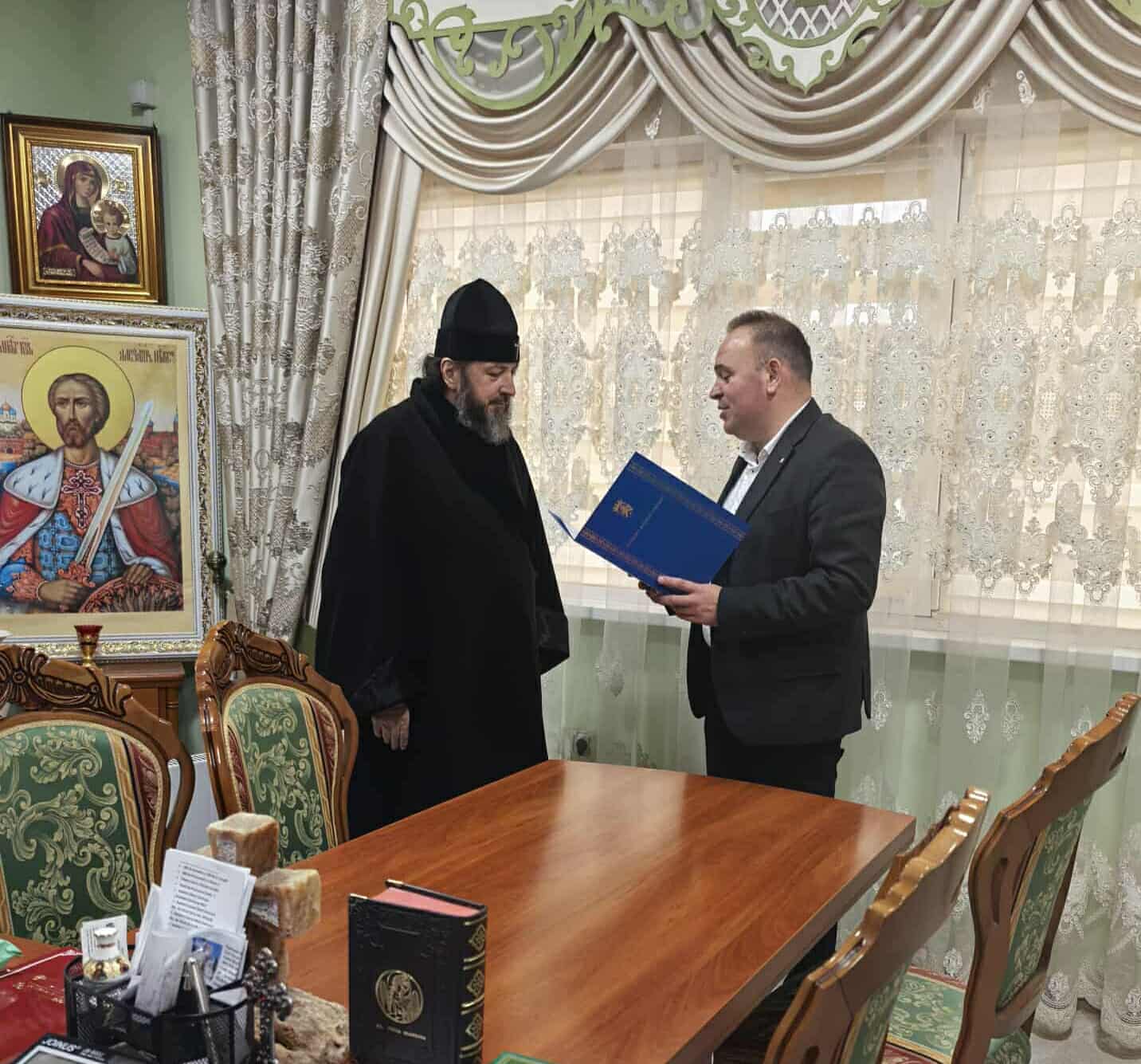 Menționăm că pe parcursul zilei, Înaltpreasfințitul Arhiepiscop PETRU a fost vizitat de dnl Dionisie TERNOVSCHI, Președintele Raionului Ungheni, care a venit, de al felicita anticipat pe Vlădica PETRU, cu prilejul împlinirii a 20 ani de arhierie, pe care îi va sărbători mâine, 13 noiembrie.