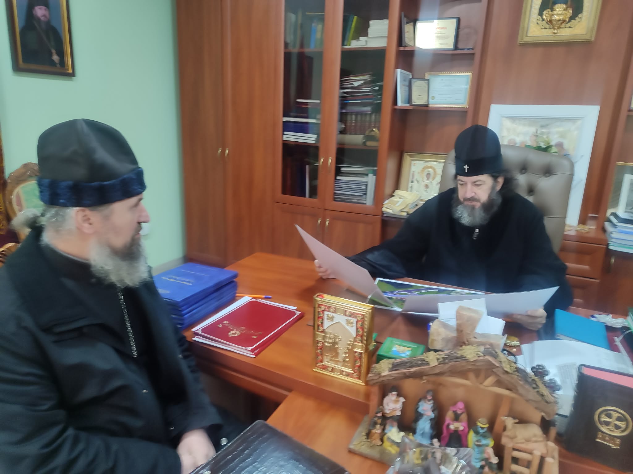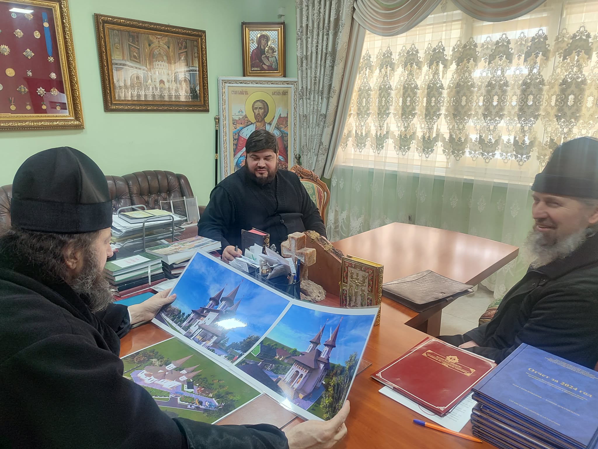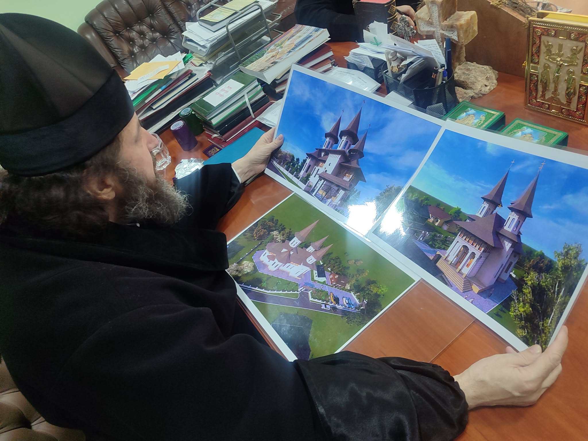 De asemenea, în audiență, Înaltpreasfinția Sa l-a primit și pe prot. Nicolai CĂRHILAN, parohul bisericii „Icoana Maicii Domnului – Potolește întristarea mea” de pe lângă Spitalul Raional Nisporeni, care i-a prezentat Ierarhului proiectul viitoarei bisericii pe care Sfinția Sa cu binecuvântarea Înaltpreasfințitului Arhiepiscop PETRU o va construi în or. Nisporeni. Chiriarhul a analizat proiectul viitoarei biserici, oferindu-i părintește, protoiereului Nicolai sfaturile și povețe utile în privința realizării mărețului proiect.