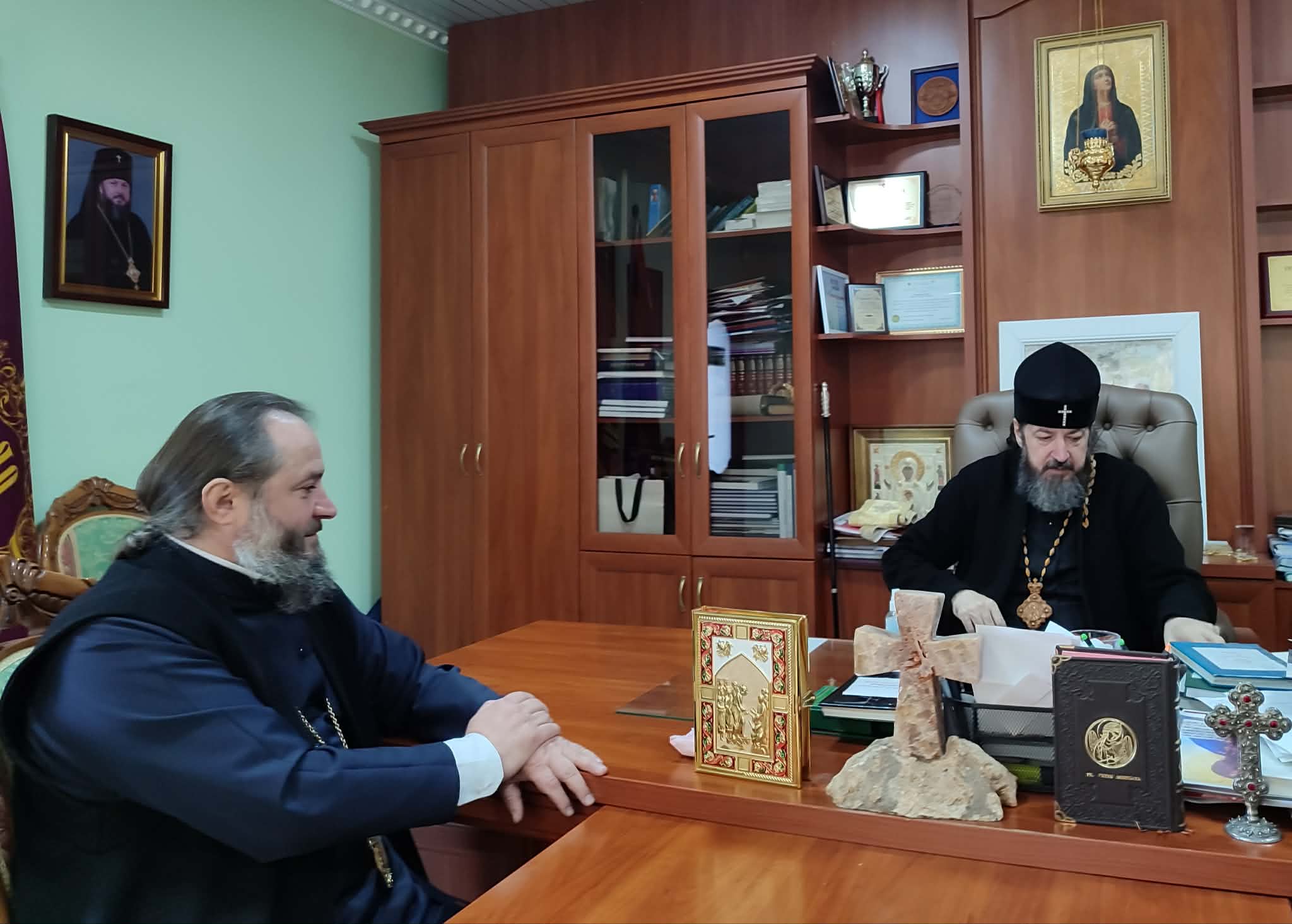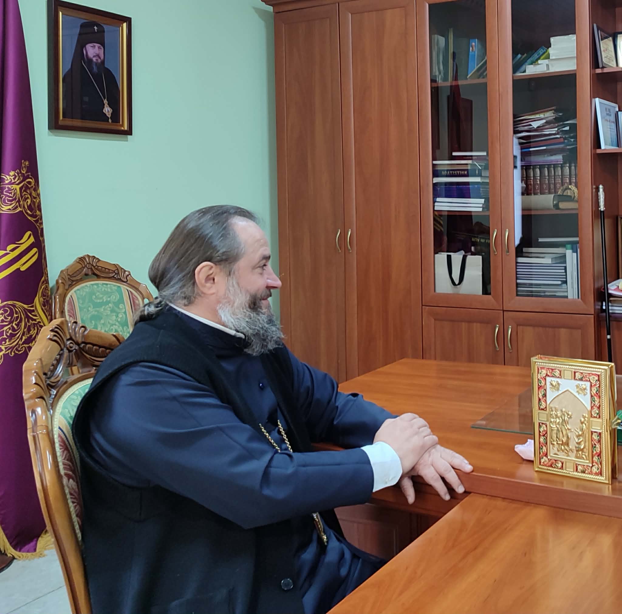 Printre cei prezenți menționăm pe Arhimandritul KIRIL (Braguța), Starețul Mănăstirii Hîrjauca și Președintele Sectorului Eparhial, Mănăstiri și viață monahală, care au discutat cu Înaltpreasfinția Sa diverse întrebări și probleme de ordin administrativ și duhovnicesc legate de activitatea mănăstirilor din Eparhie, stabilind și data următoarei sinaxe cu stareții și starețele sfintelor mănăstiri din Episcopia de Ungheni și Nisporeni.
