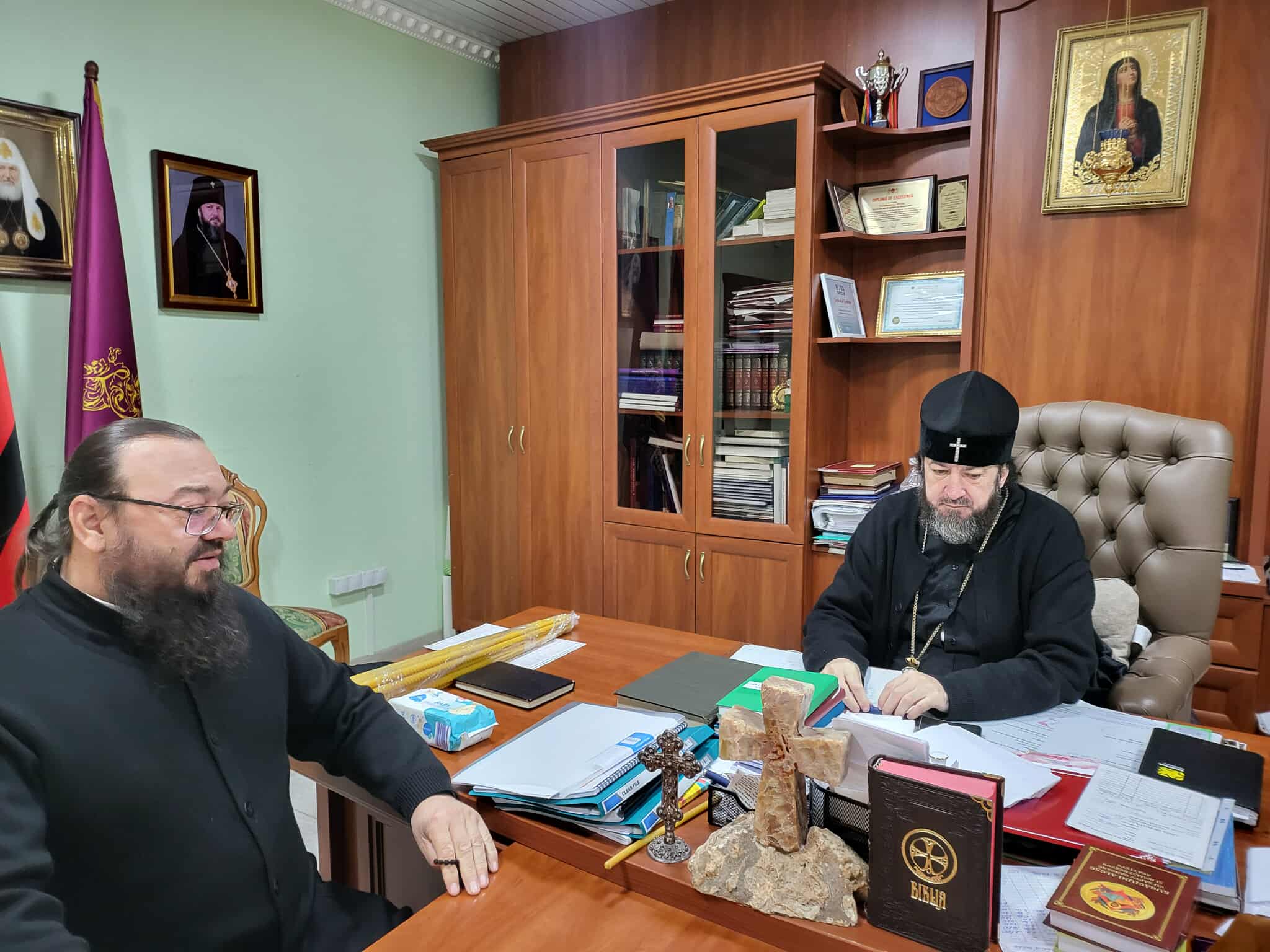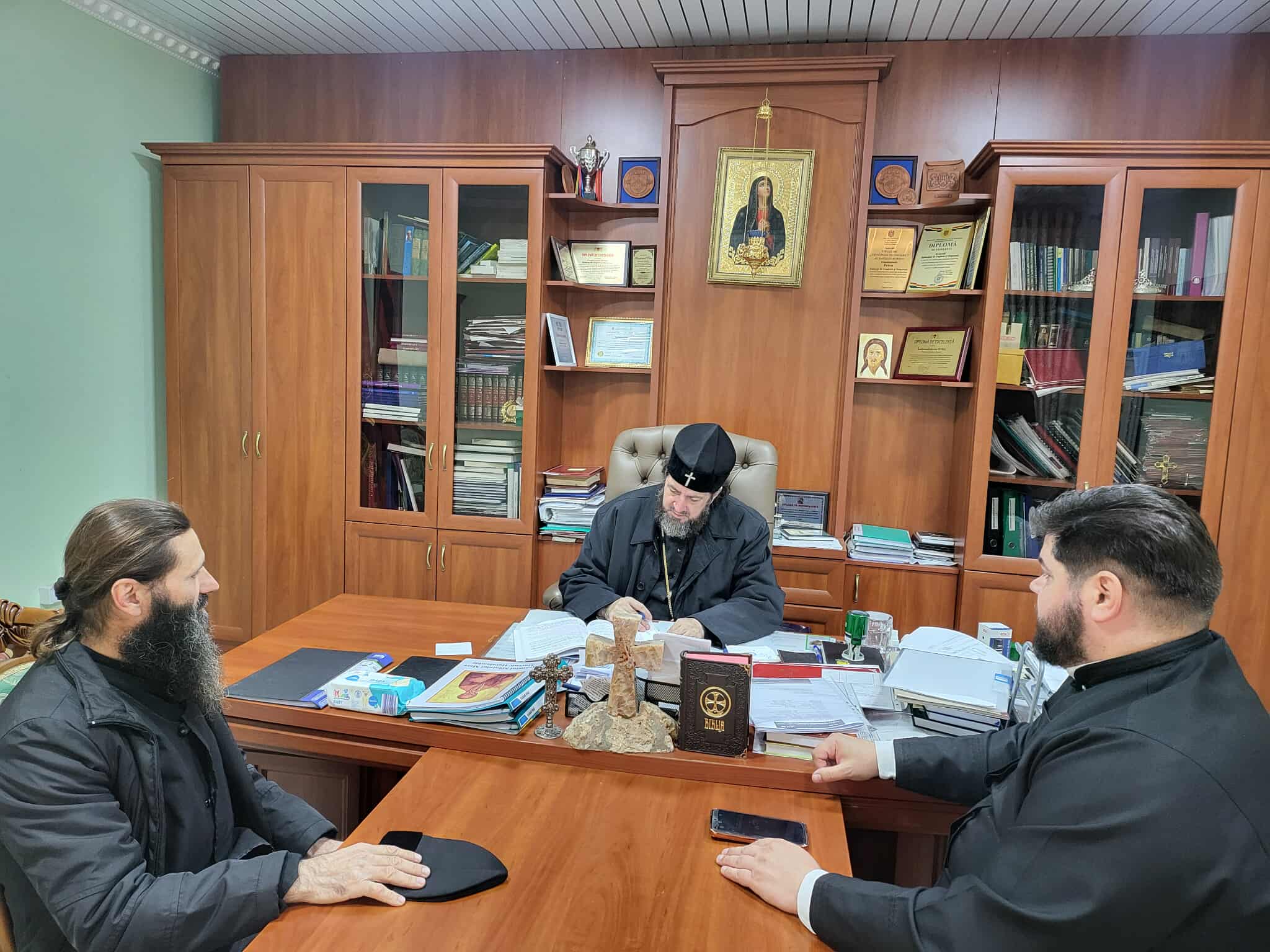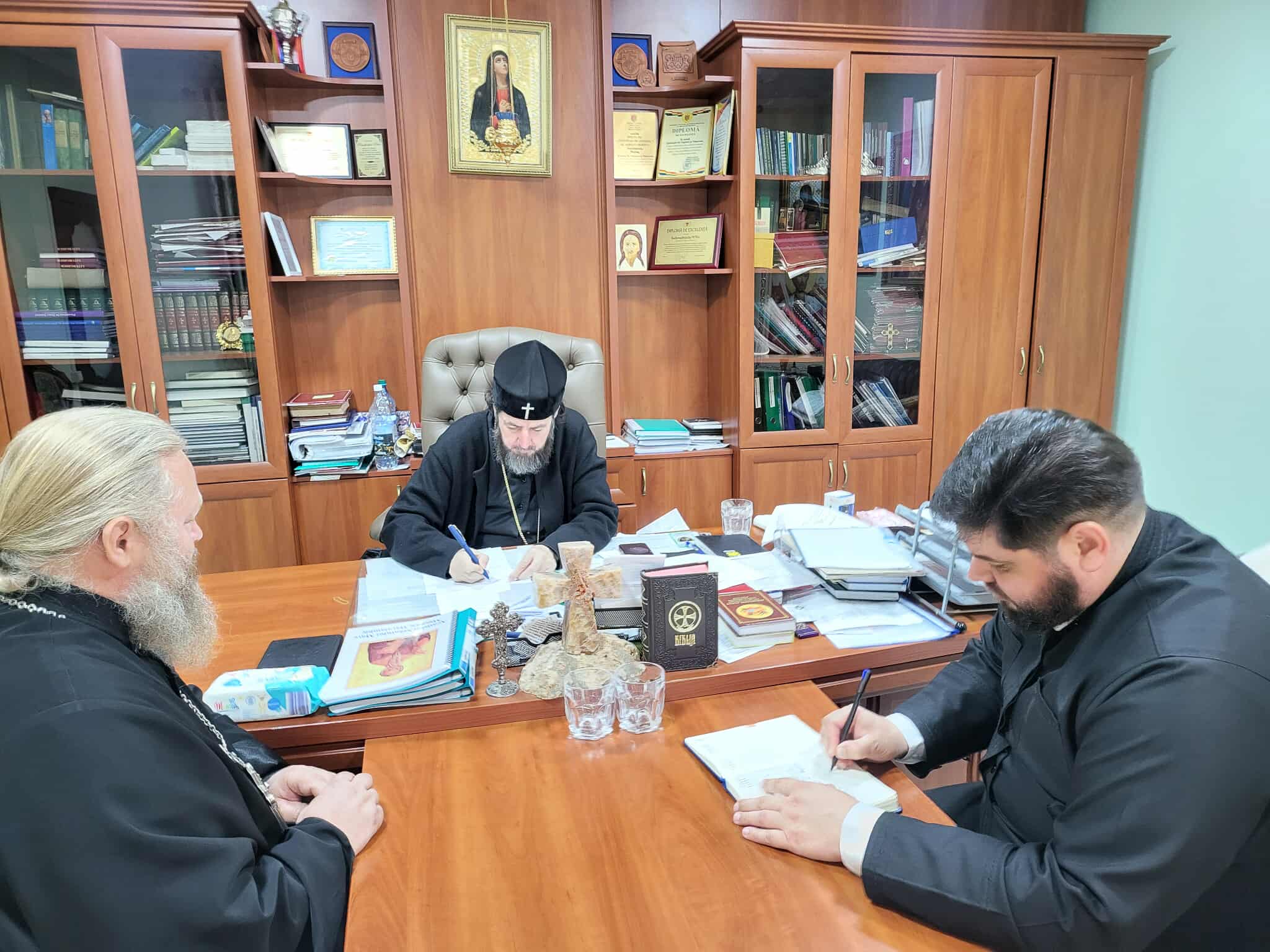 În audiență a fost și prot. Liviu BARBU, parohul bisericii „Adormirea Maicii Domnului” din s. Petrești, rn Ungheni și ierom. SERAFIM (Dediu), parohul bisericii „Icoana Maicii Domnului – Kazanskaia” din s. Horodca, rn. Hâncești, care au discutat cu Înaltpreasfinția Sa diverse întrebări legate de viața și activitatea parohiilor menționate.