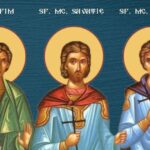 Sfinții Mucenici Trofim, Savatie și Dorimedont (+278) au trăit în vremea împăratului Roman Marcus Aurelius Probus (276-282), deci pe vremea când încă erau prigoniți creștinii, iar în Antiohia stăpânea dregătorul Eliodor. Pe când se săvârșea praznicul zeului Apolo, din părțile din afară de cetate, veniră în Antiohia doi oameni, Trofim și Savatie, creștini dreptcredincioși și […]