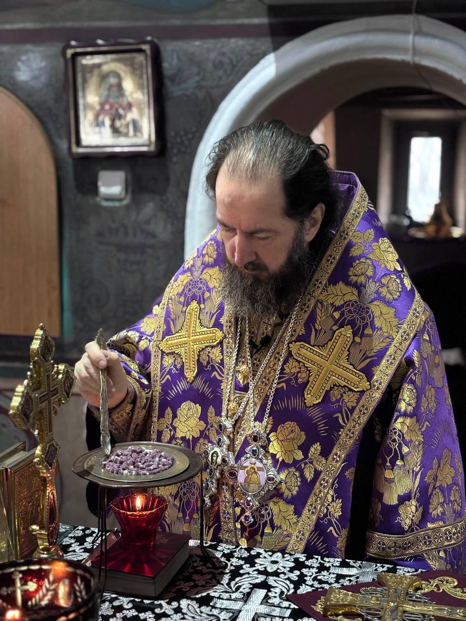 La final, Ierarhul a explicat importanța Sfintei Liturghii și rolul ei primordial în mântuirea sufletelor noastre: ,,Nu putem trăi fără această hrană tainică primită de la Viţa lui Hristos, ale cărei mlădiţe El nea învrednicit să fim. Dar care este seva Viţei lui Hristos? Este Sângele Lui, este Trupul Lui, pe care El ne porunceşte să le bem şi să le mâncăm. Iar dacă nu ne vom hrăni cu Trupul lui Hristos şi cu Sîngele lui Hristos, atunci, aşa cum a zis Domnul, nu vom avea viaţă în noi şi El nu va petrece întru noi, şi noi întru El. Iată cît de însemnată este această Taină a împărtăşirii cu Trupul şi Sângele lui Hristos, pe care Domnul însuşi a întemeiat-o acum la Cina cea de Taină, poruncindu-ne să o săvârşim spre pomenirea Lui. Suntem datori să credem din toată inima în faptul că, împărtăşindu-ne cu Trupul şi Sângele lui Hristos sub chipul pâinii şi al vinului, cu adevărat mâncăm Trupul lui Hristos şi bem Sângele Lui. Şi nimeni dintre noi să nu se îndoiască văzând că pâinea rămâne pâine şi vinul rămâne vin şi că ele au gust de pâine şi de vin. Să nu se îndoiască nimeni de faptul că nu sunt pâine simplă şi vin simplu, ci adevăratul Trup şi adevăratul Sânge al lui Hristos.”