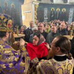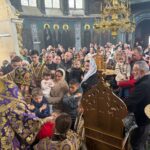 După rugăciunea Tatăl nostru…, Înaltpreasfinâia Sa a împărtășit aproape 100 de credincioși cu Sfântul Trup și Scumpul Sânge al Domnului Nostru Iisus Hristos.