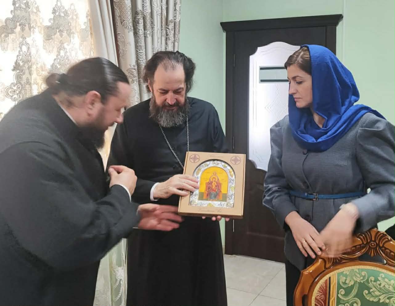 La final, după ce au purtat o discuție duhovnicească, Înaltpreasfinția Sa a oferit în dar o frumoasă icoană argintată cu chipul „Sfintei familii”, ca să le fie de spor și ajutor pe cale mântuirii întregii familii Rîmbu: prot. Ștefan, preoteasa Daniela și cei patru copii.