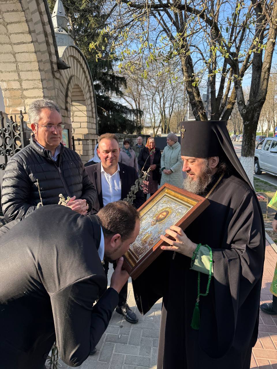 În dimineața zilei, Înaltpreasfinția Sa a fost întâmpinat solemn de către slujitoriii și credincioșii prezenți, dar și de dnl Vitalie VRABIE, Primarul Municipiului Ungheni; dnl Ion POIA, Reprezentantul Guvernului în teritoriu și dnl Dionisie TERNOVSCHI, Președintele Raionului Ungheni.