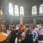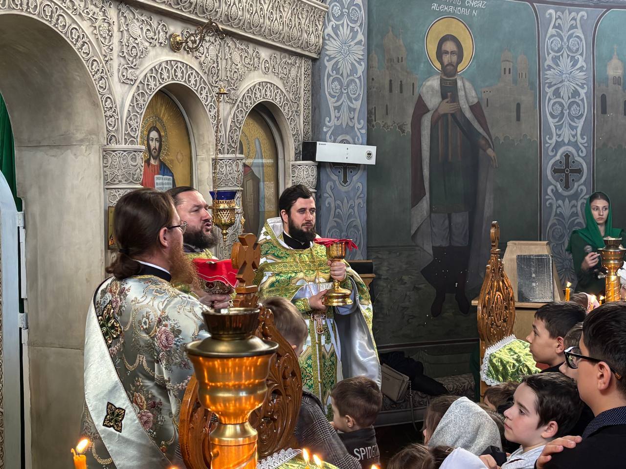 După rugăciunea Tatăl nostru…, au fost împărtășiți creștinii ce s-au pregătit pentru primirea sfintelor Taine.