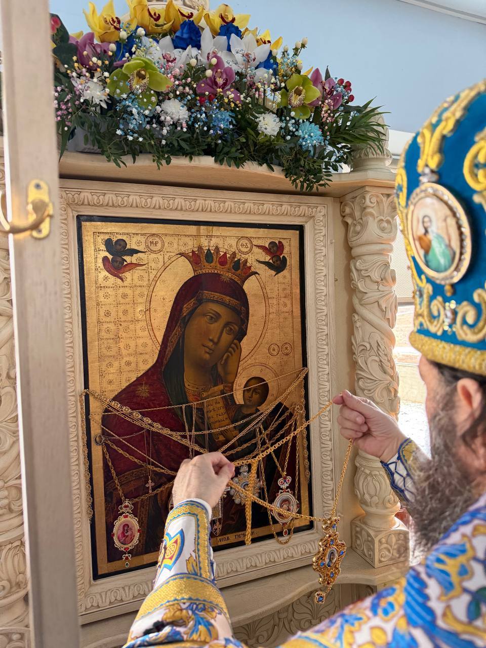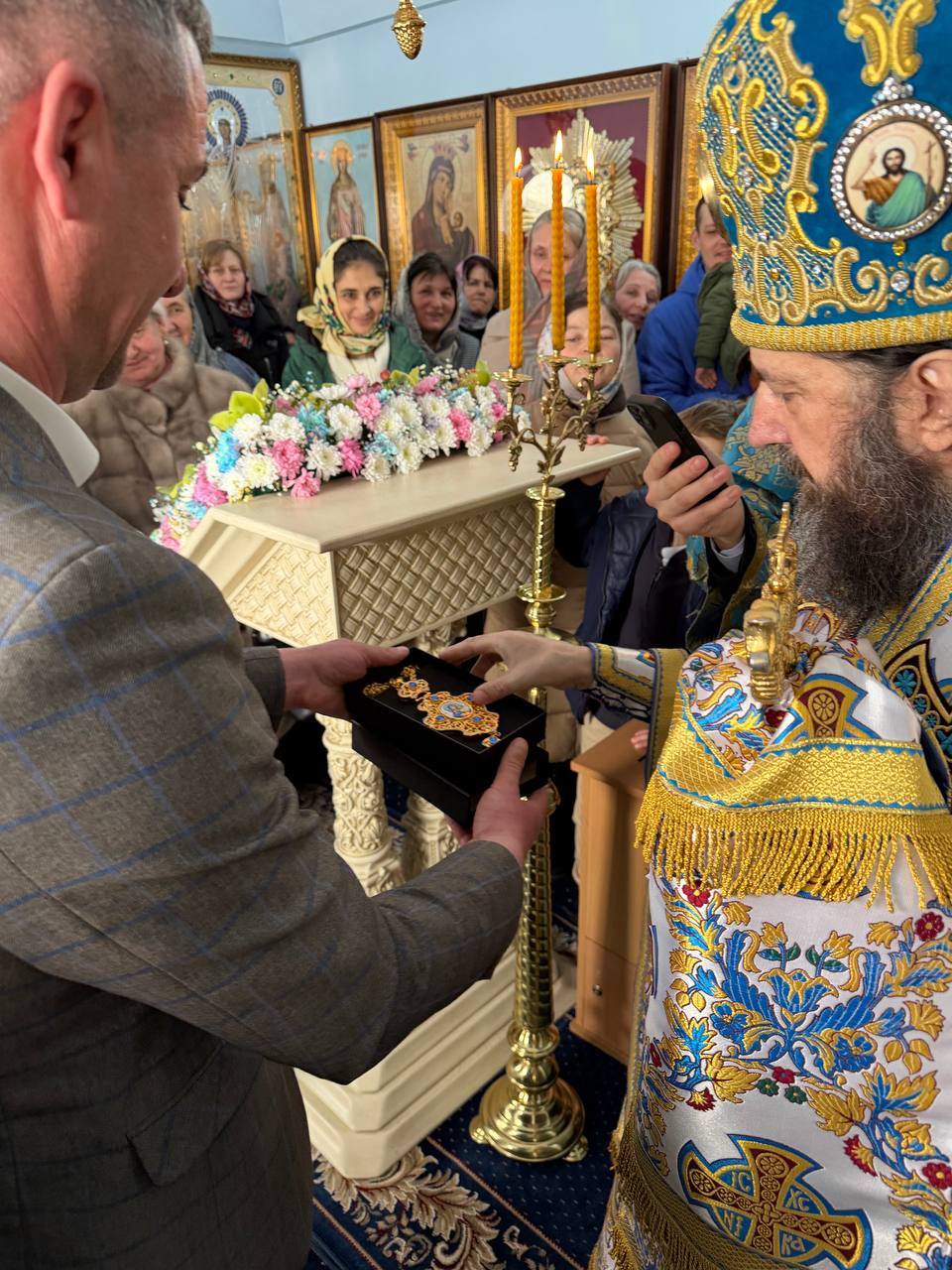 După aceasta Înaltpreasfinția Sa a dăruit o frumoasă Panaghie, pentru a fi pusă spre închinare în Icoana Maicii Domnului „Potolește întristarea mea”.