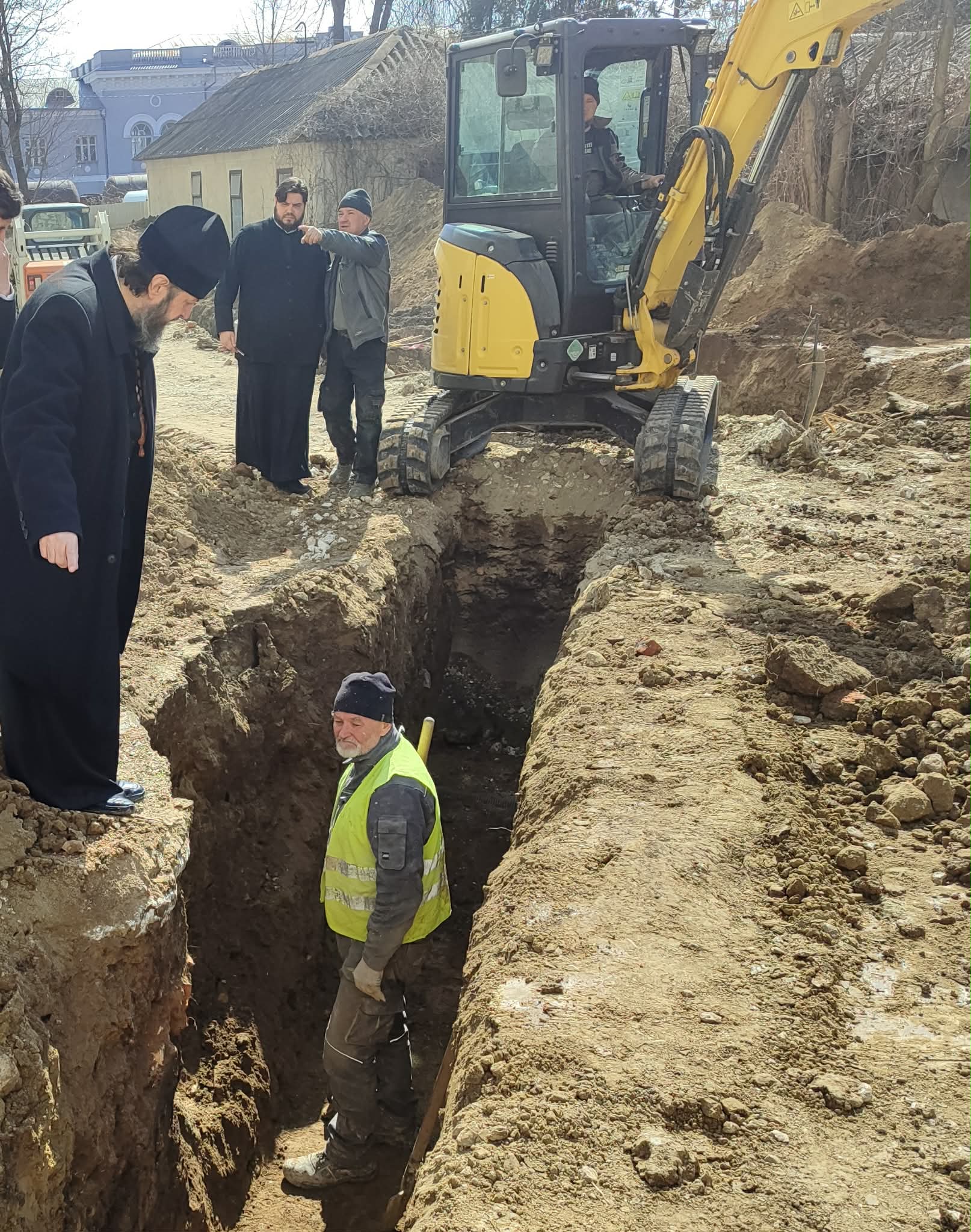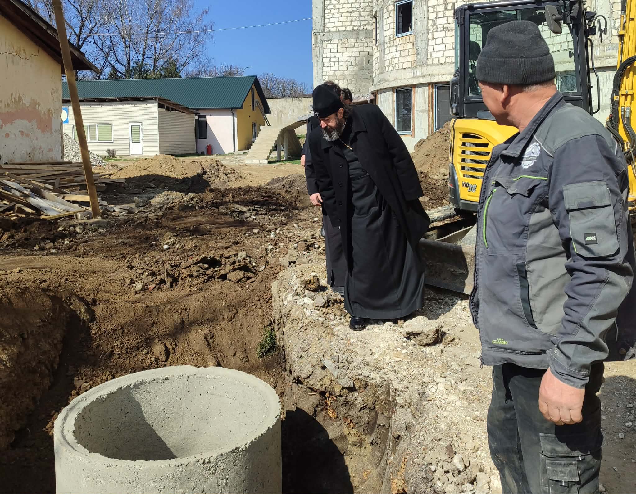 Inițial Înaltpreasfinția Sa însoțit de prot. Vadim COROSTINSCHI, Secretarul Eparhial și colaboratorii Centrului Eparhial, s-a familiariza îndeaproape cu procesul de lucru ce se efectuiază în prezent în exterior, la sistemul de canalizare și apă ce va fi conectat la imobilul viitorul Centrul Eparhial.