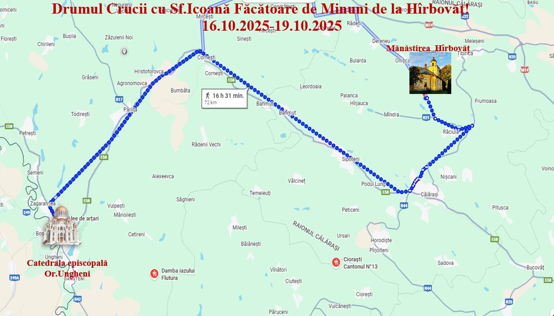 18.10.2025. Sâmbătă – traseu Sipoteni – mănăstirea Hîrbovăț, prin s. Nișcani. 15 km / 3.30 ore