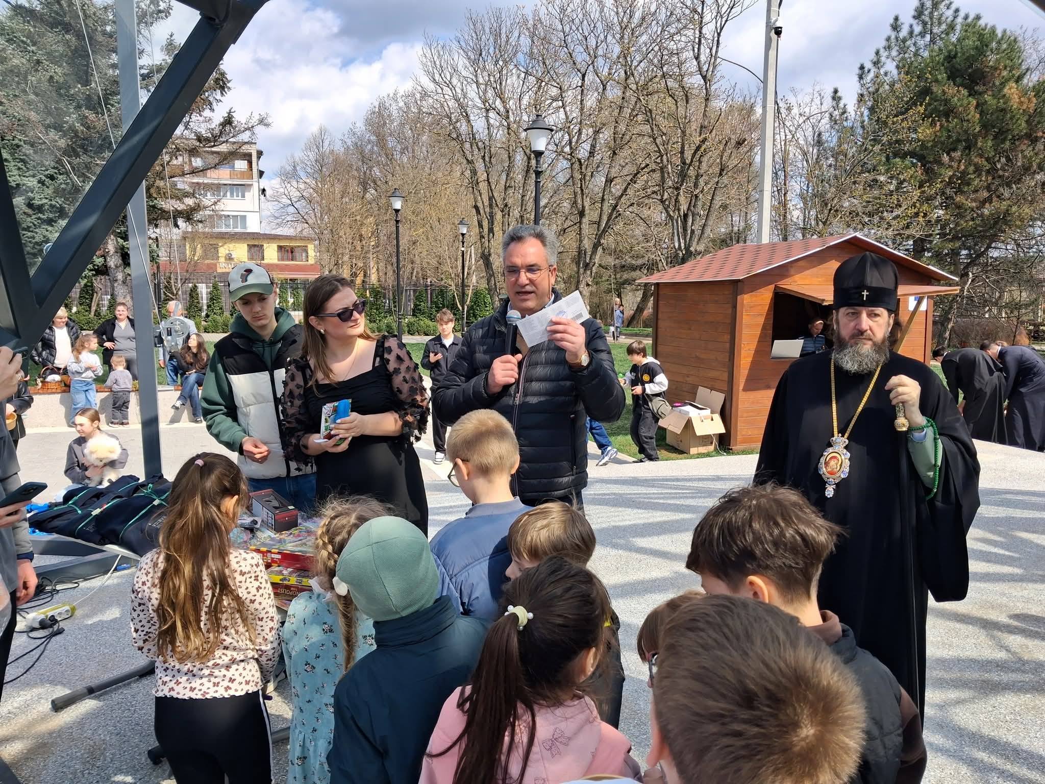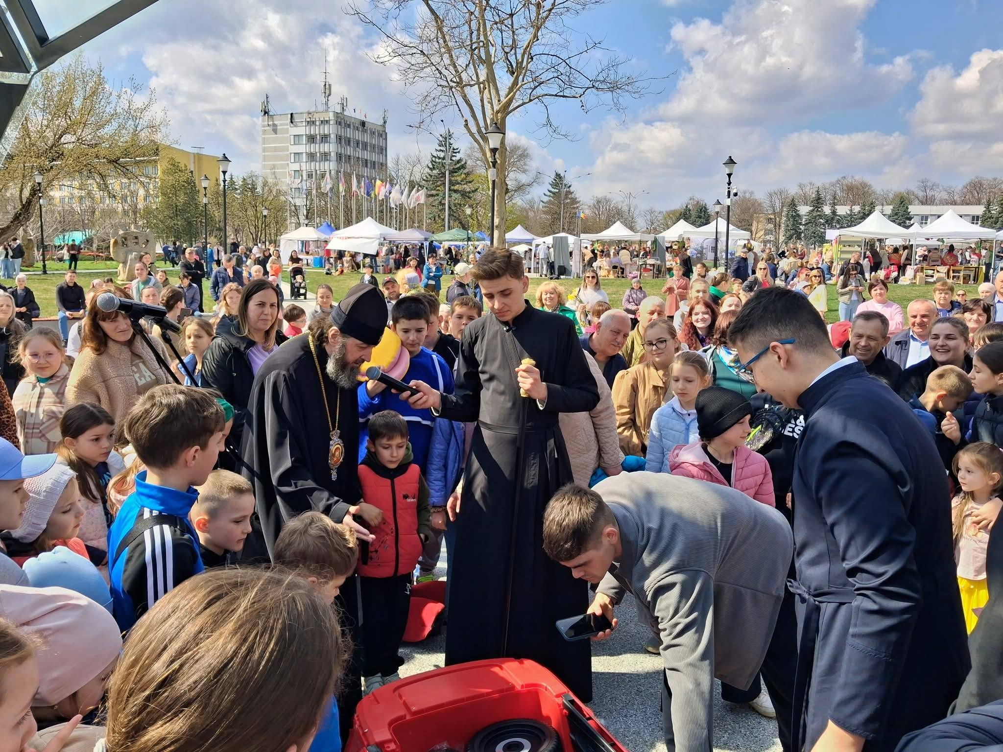 La final Înaltpreasfințitul PETRU, Arhiepiscop de Ungheni și Nisporeni dimpreună cu dnl Vitalie VRABIE, Primarul Municipiului Ungheni, dnl Dionisie TERNOVSCHI, Președintele Raionului Ungheni și dnl Ion POIA, Reprezentantul Guvernului în teritoriu, au împărțit copiilor vaucere, daruri și surprizele pregătite, fiecărui ce i-a nimerit scris pe bilețelul din oul de plastic găsit.