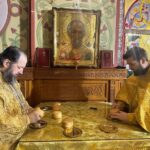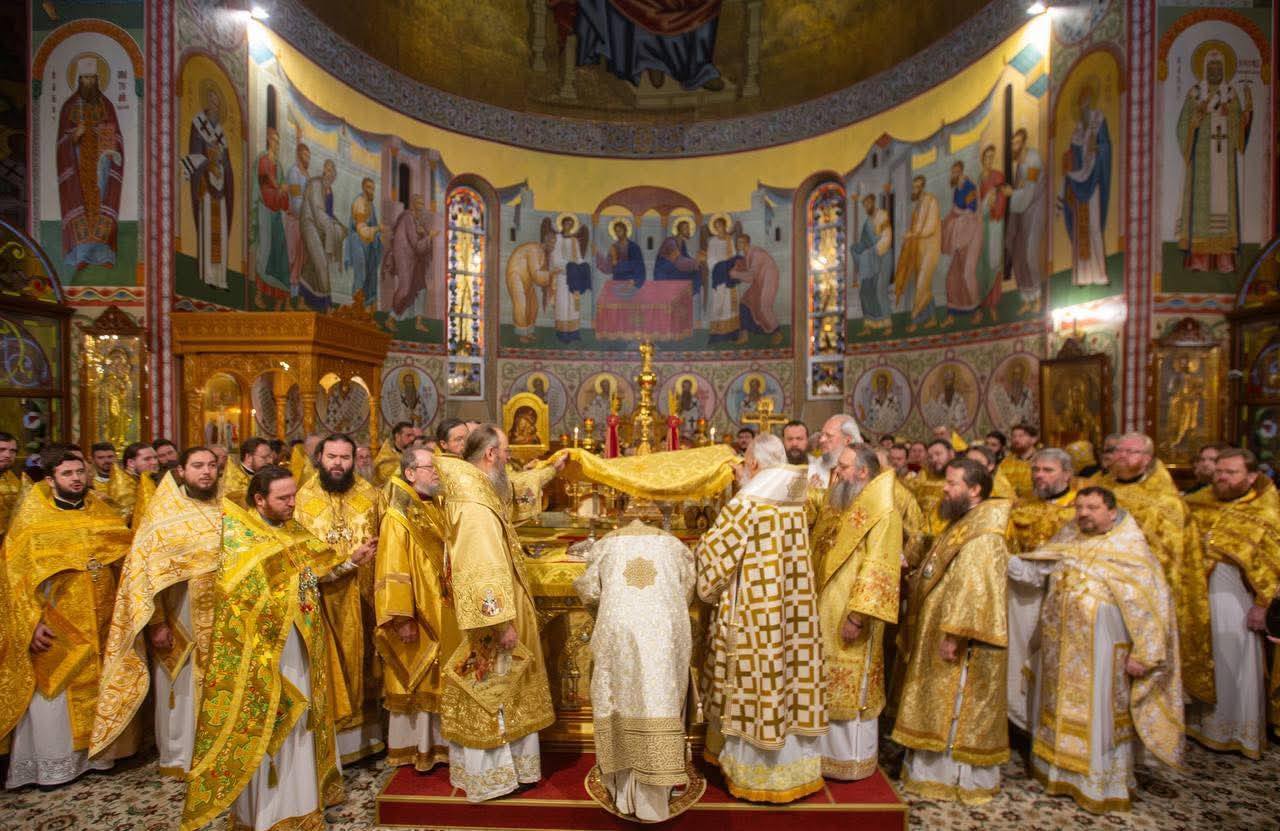 Sfânta Liturghie a fost săvârșită într-o atmosferă solemnă și duhovnicească profundă în biserica ,,Izvorul Tămăduirii” din Mănăstirea ,,Adormirea Maicii Domnului” din Odessa și a fost oficiată de Preafericitul ONUFRIE, Mitropolitul Kievului și al întregii Ucraine, în prezența Chiriarhului locului, ÎPS AGAFANGHEL, Mitropolitul de Odessa și Ismail și a unui impunător sobor de arhierei, preoți și diaconi.