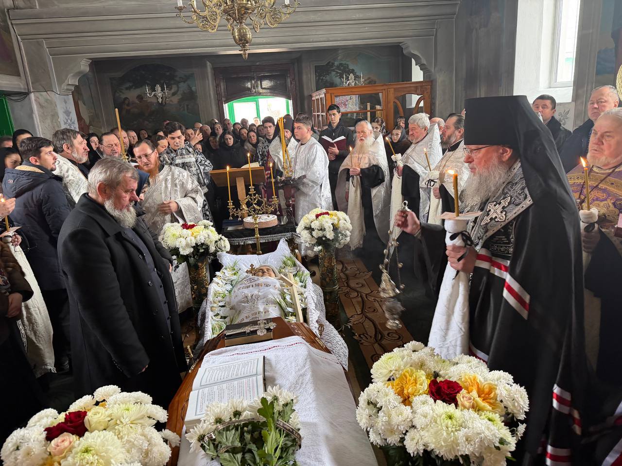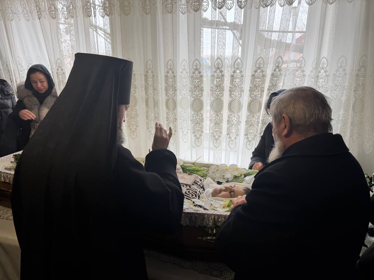 La această slujbă de înmormântare Înaltpreasfințitul Arhiepiscop PETRU a fost însoțit de Egumena PARASCHEVA (Cazacu), Stareța Mănăstirii Hîncu, arhim KIRIL (Braguța), Președintele Sectorului Eparhial Mănăstiri și viață monahală și Starețul Mănăstirii Hîrjauca, arhim SPIRIDON (Marin), Egumenul Mănăstirii Hîrbovăț, protodiaconul Victor ROTARI și arhidiaconul VENIAMIN.