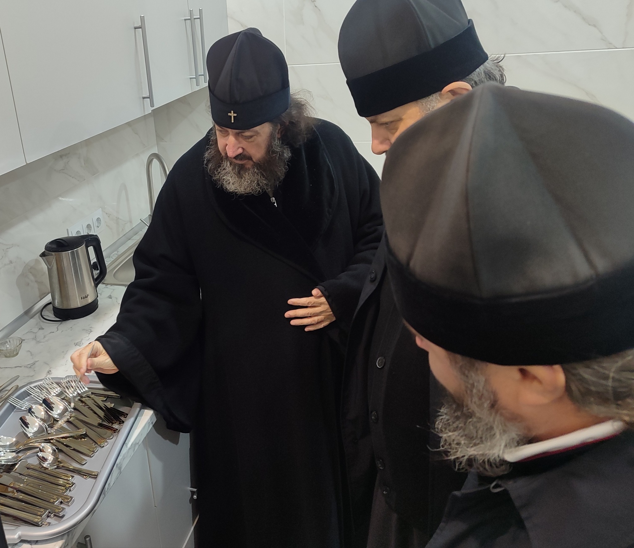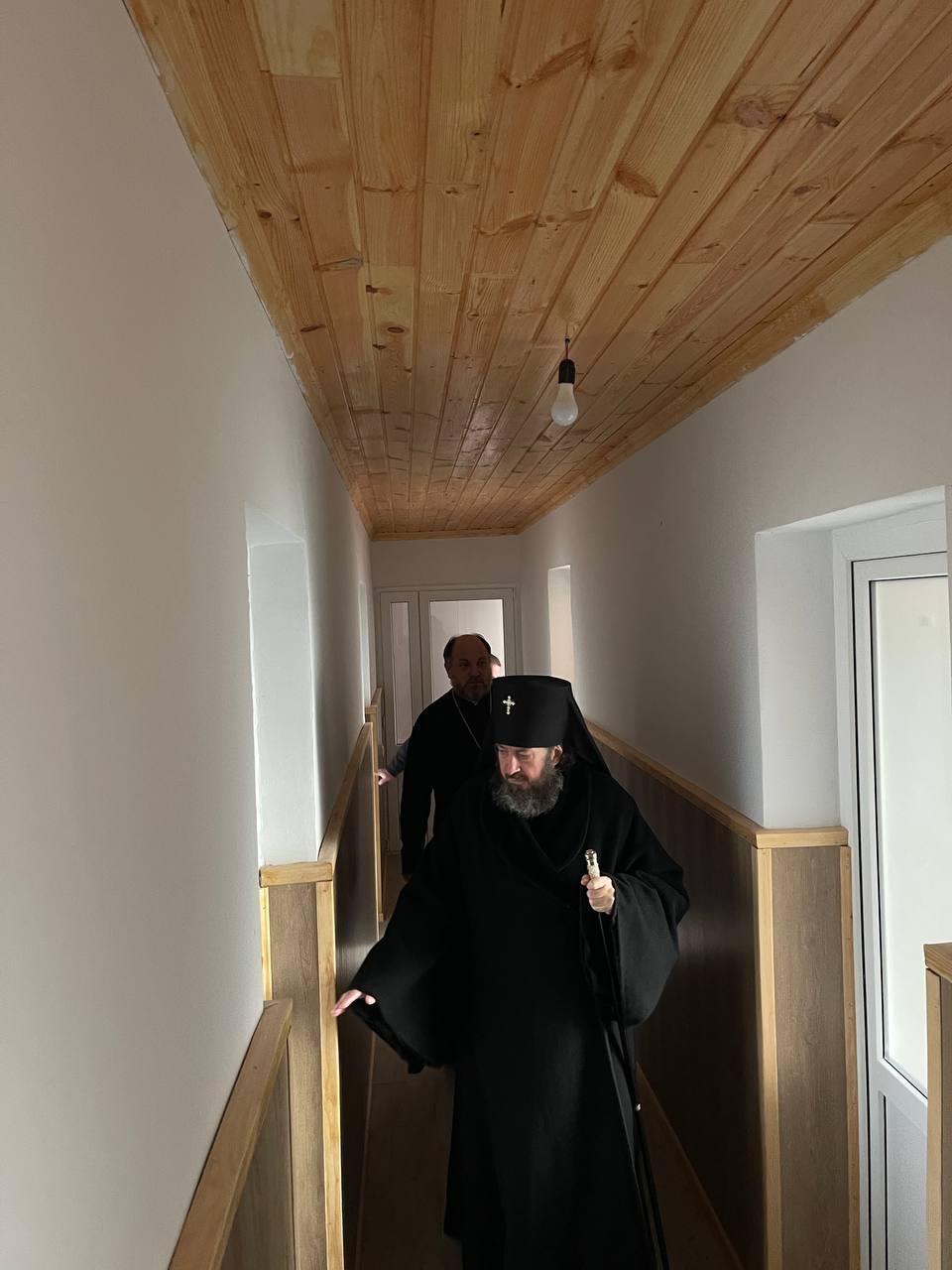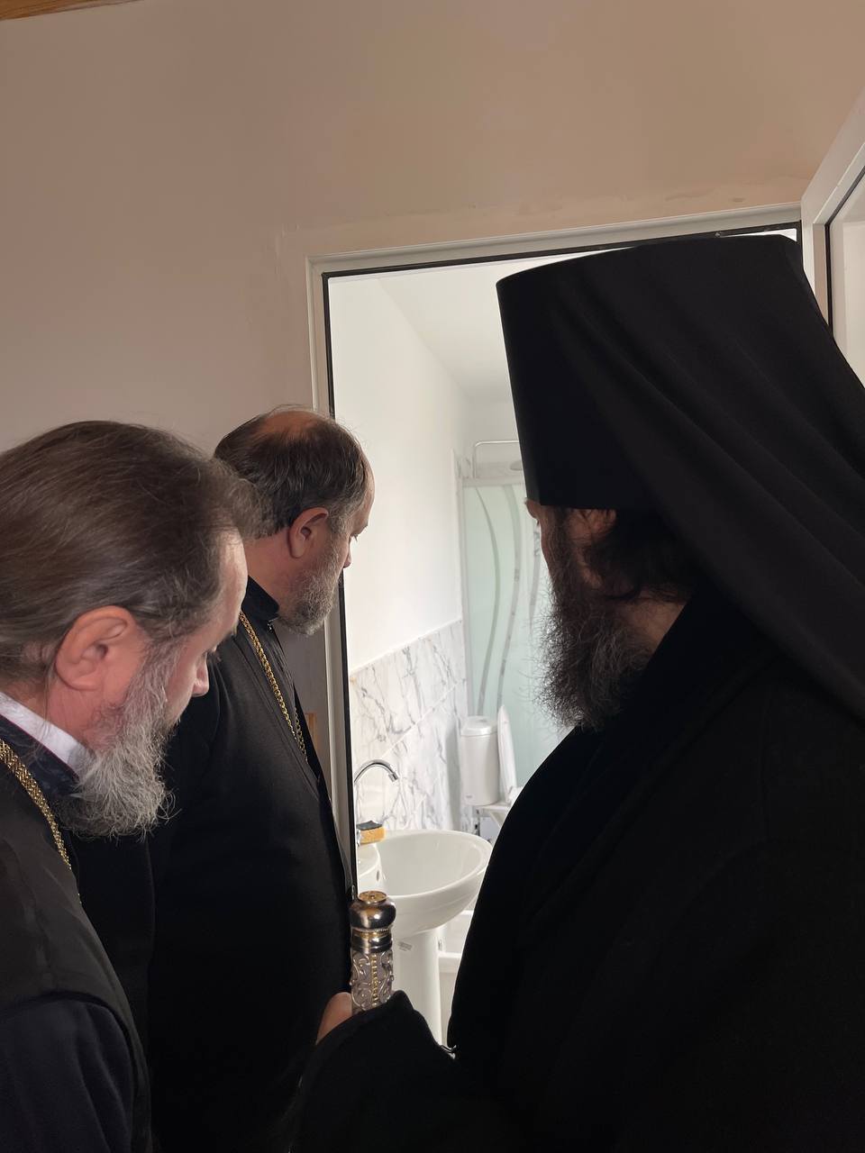 După Sfânta Liturghie, Ierarhul le-a prezentat respectivilor părinți arhimandriți noul corpus construit recent în continuarea edificiului existent deja, arătându-le chiliile și încăperile noului corpus.