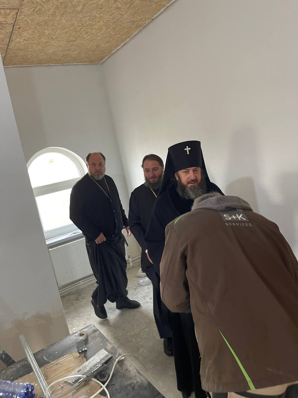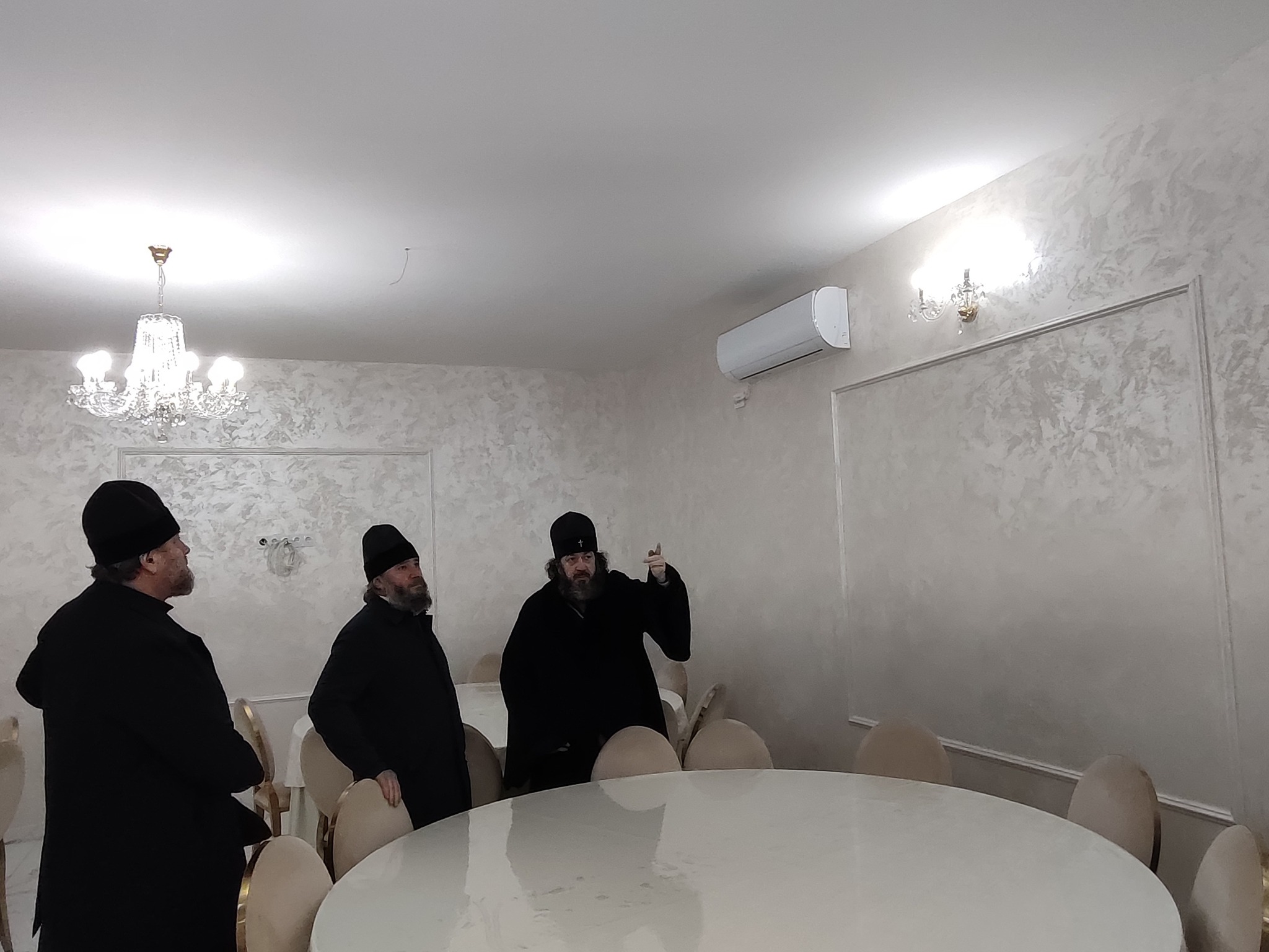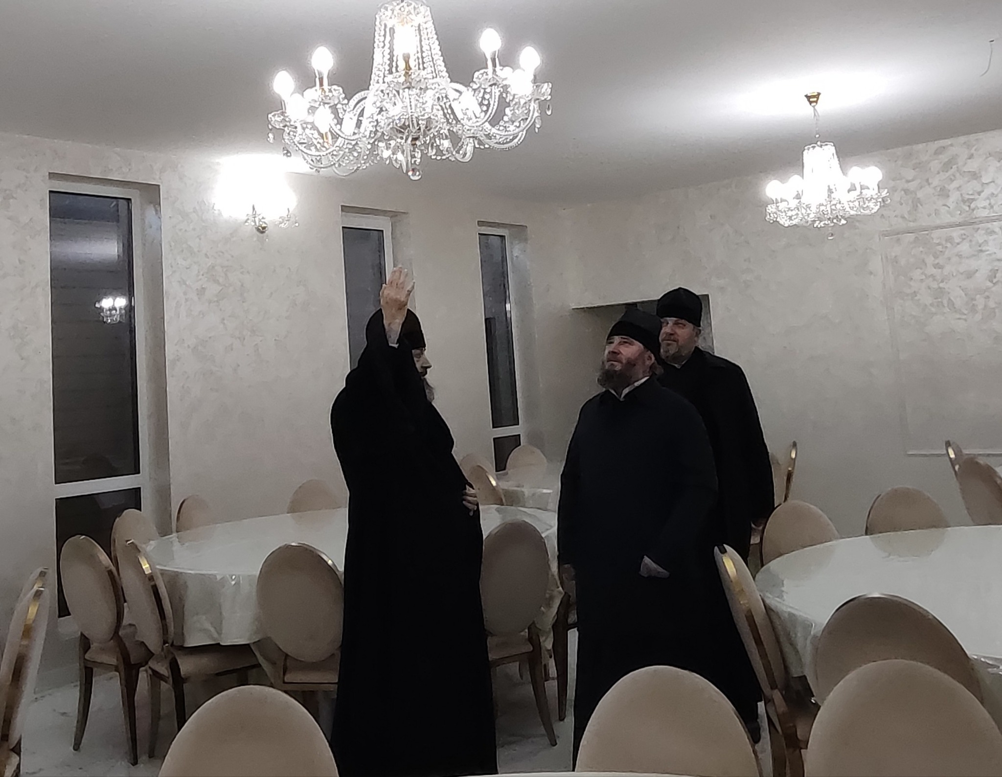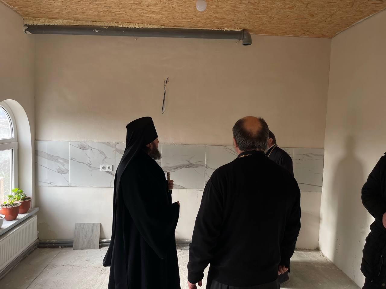 După Sfânta Liturghie, Ierarhul le-a prezentat respectivilor părinți arhimandriți noul corpus construit recent în continuarea edificiului existent deja, arătându-le chiliile și încăperile noului corpus.