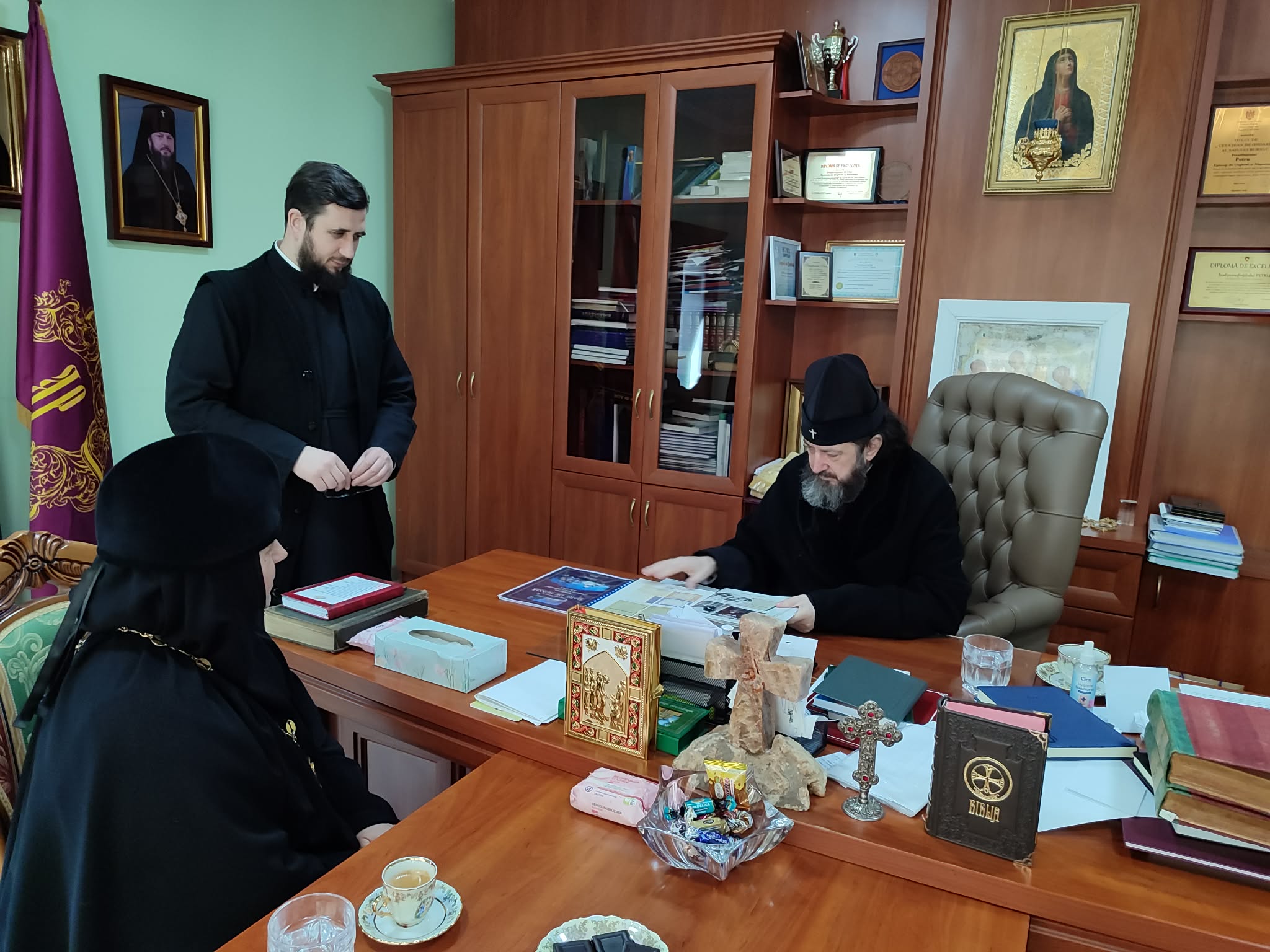Pe parcursul zilei, Ierarhul a primit în audiență preoți și mireni din cuprinsul Eparhiei cu diverse probleme şi întrebări.