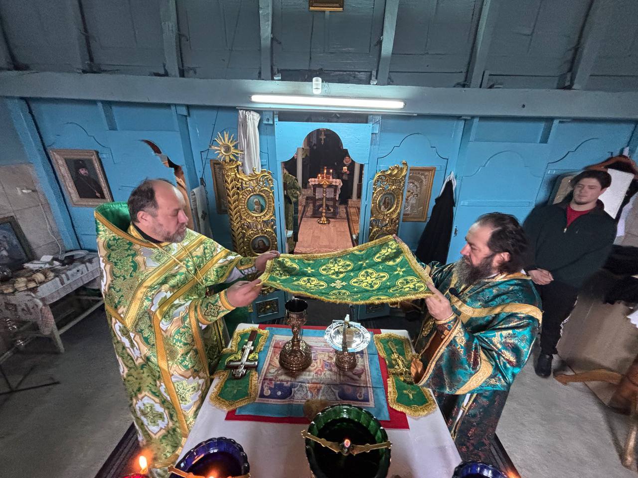 În curtea bisericii de asemenea a fost Sfânta Liturghie.