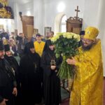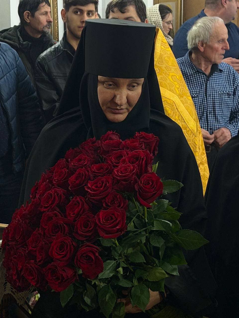 În continuare, Egumena PARASCHEVA (Cazacu), Stareța Mănăstirii Hîncu, a adresat părintelui omagiat, din partea Stareților și Starețelor Mănăstirilor din Episcopia de Ungheni și Nisporeni, un cuvânt de felicitare, oferindu-i de asemenea un buchet din 51 de trandafiri.