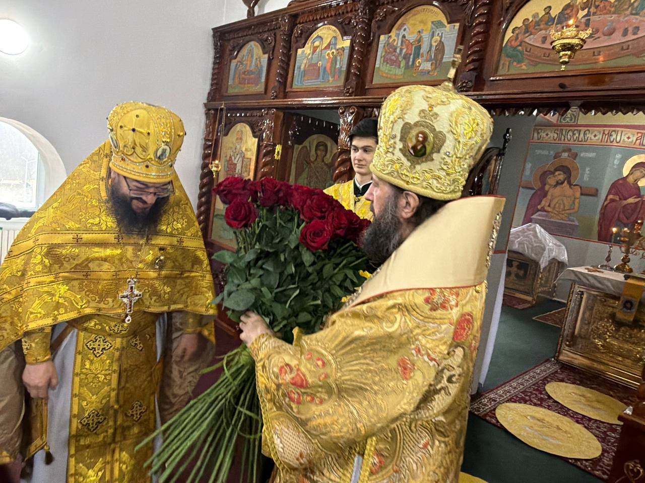 În timpul Sfintei Liturghii au fost înălțate rugăciuni de slavă, de laudă și de mulțumire lui Dumnezeu și Maicii Domnului, care ocrtotește acest așezământ monahal, dar și rugăciuni pentru sănătatea și mântuirea părintelui stareț, omagiatul zilei.
