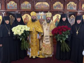 După aceasta Înaltpreasfințitul Arhiepiscop PETRU i-a oferit părintelui stareț în dar, cu multă generozitate o cruce pectorală și un buchet impunător din 51 de trandafiri.