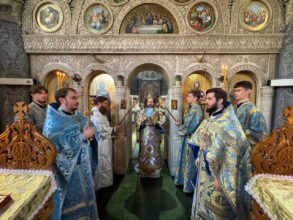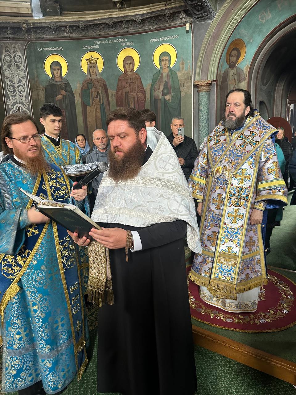 După citirea pericopei evanghelice, Prot. Nicolai BOIAN, cu binecuvântarea Înaltpreasfințitului Arhiepiscop PETRU a ținut un cuvânt predicatorial explicând importanța și semnificația sărbătorii Acoperământul Maicii Domnului.