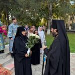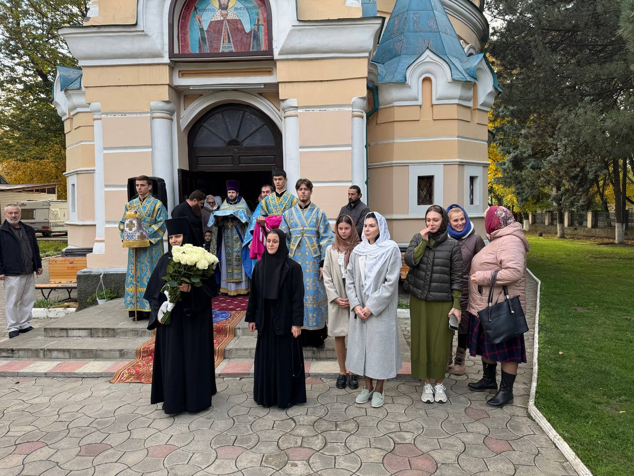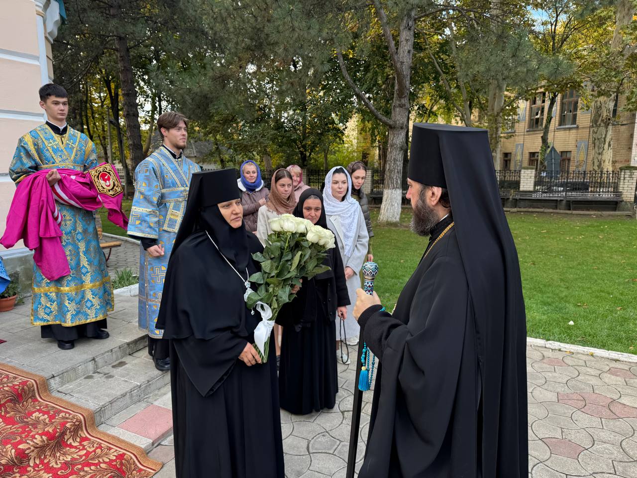 În dimineața zilei Ierarhul a fost întâmpinat de slujitorii și credincioșii prezenți și de Egumena SILUANA (Iacob), Stareța mănăstirii ,,Nașterea Maicii Domnului” din s. Vărzărești, rn. Nisporeni.