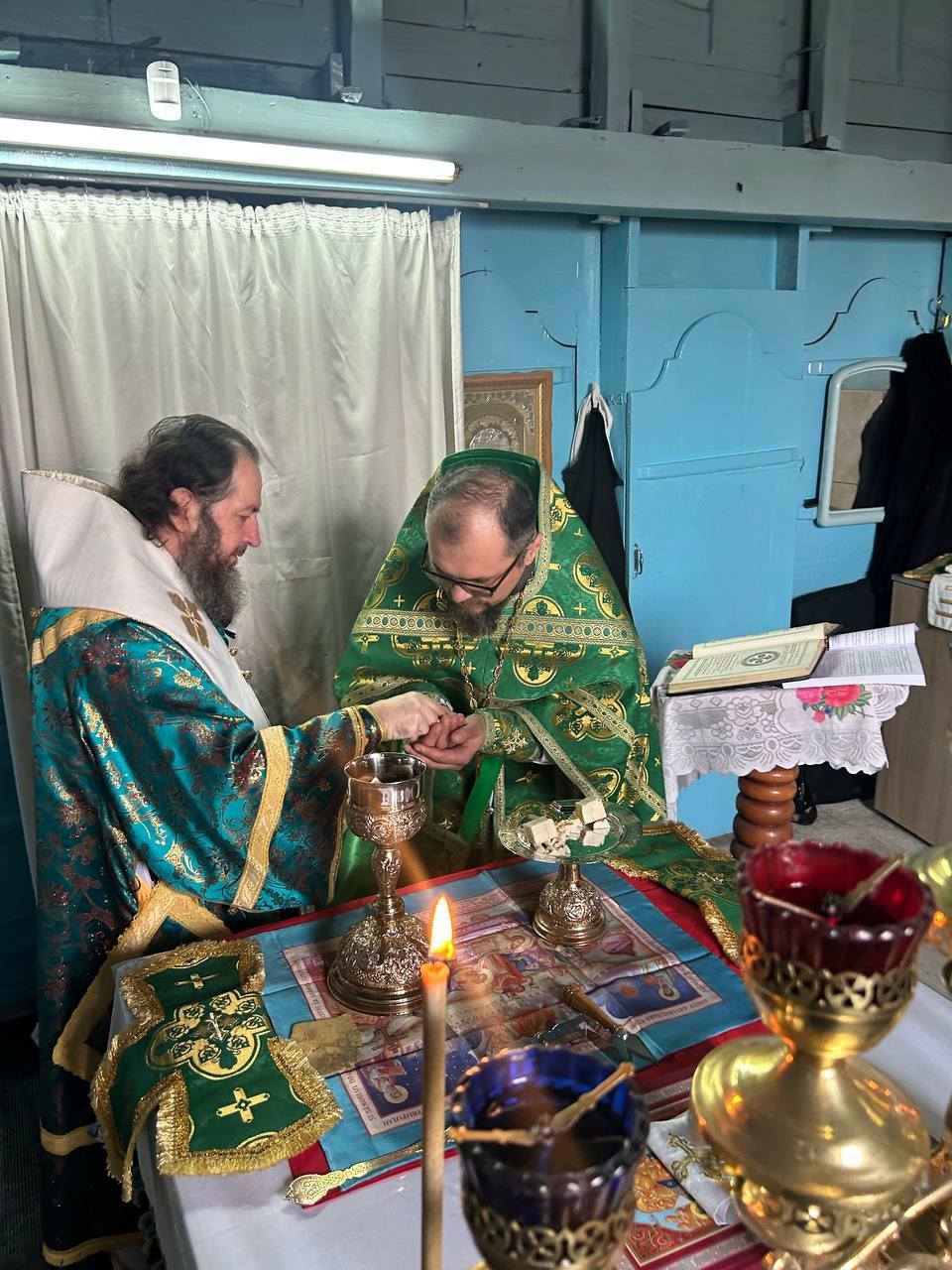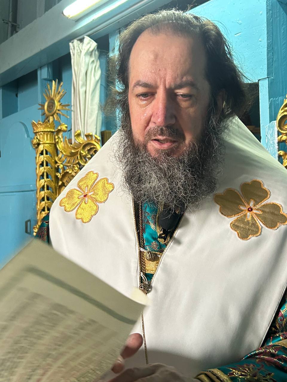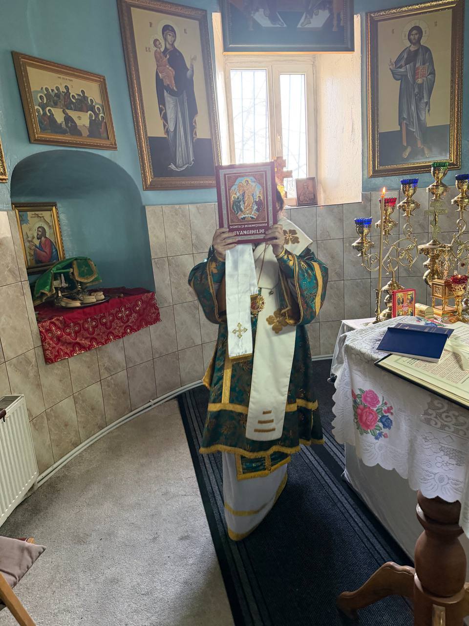 Cu Înaltpreasfinția Sa a coliturghisit doar parohul respectivei biserici, prot. Alexandru POPA, întrucât sfântul locaș este închisă, nepermițîndu-le creștinilor și preoților să intre înlăuntru.