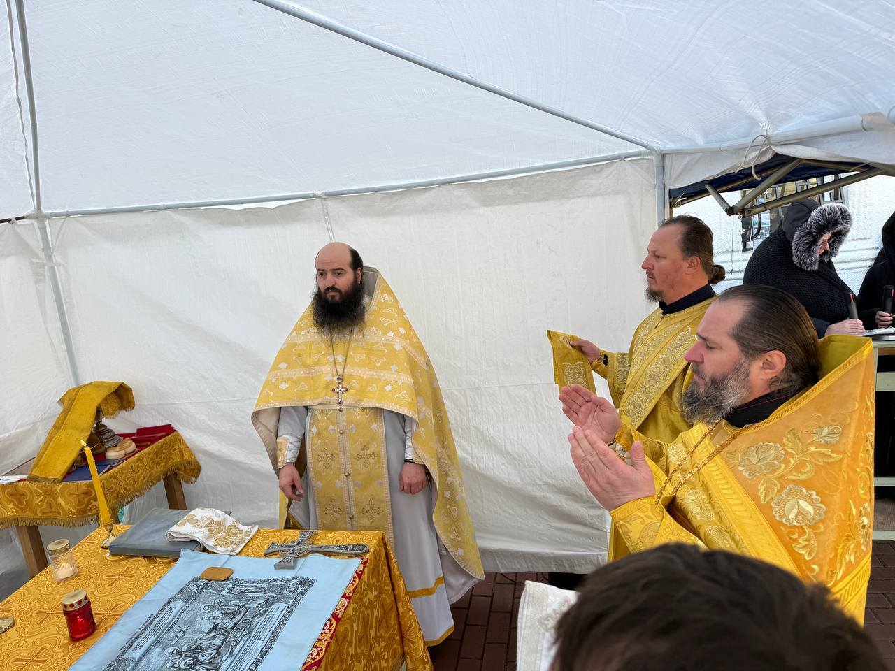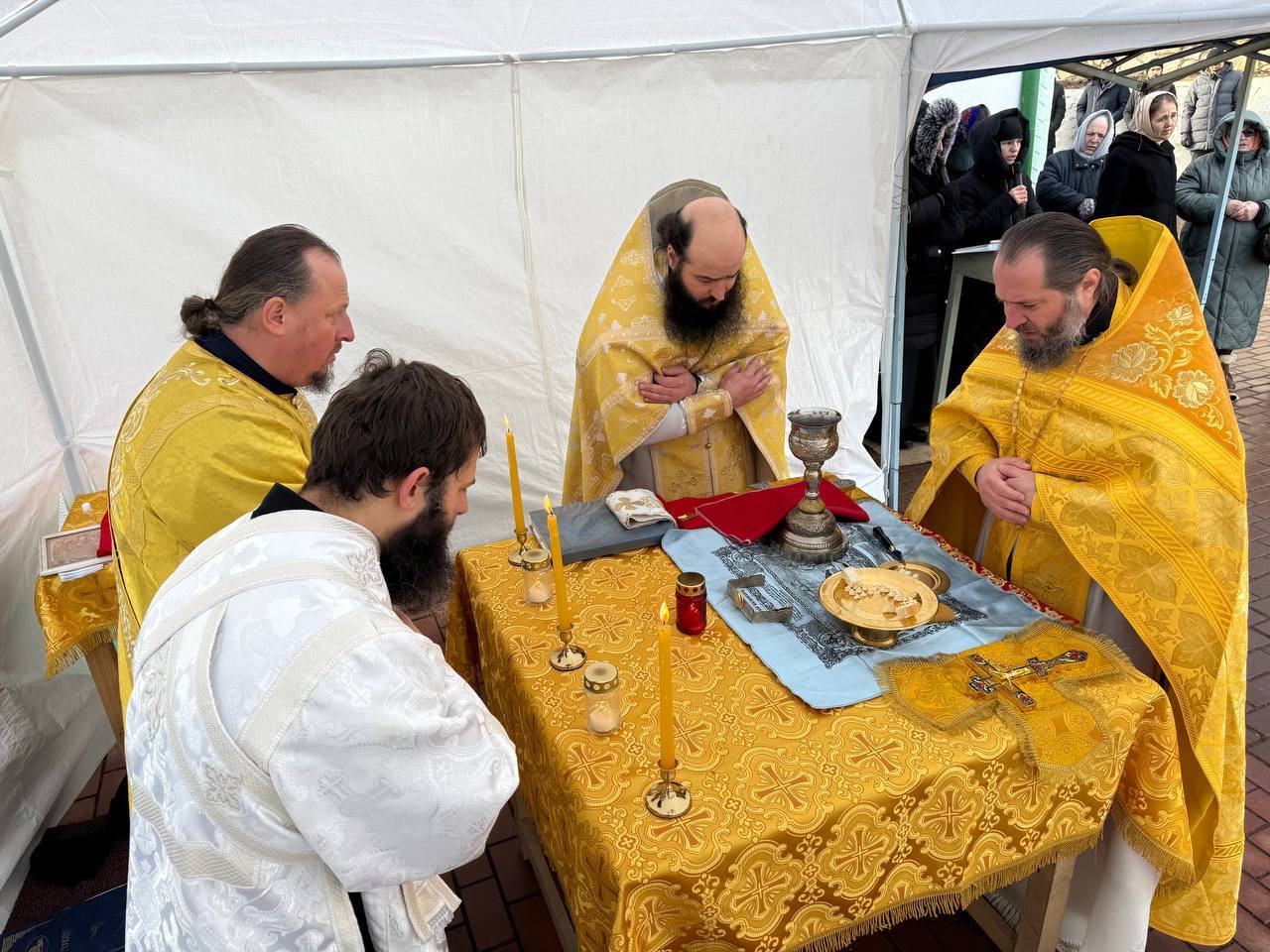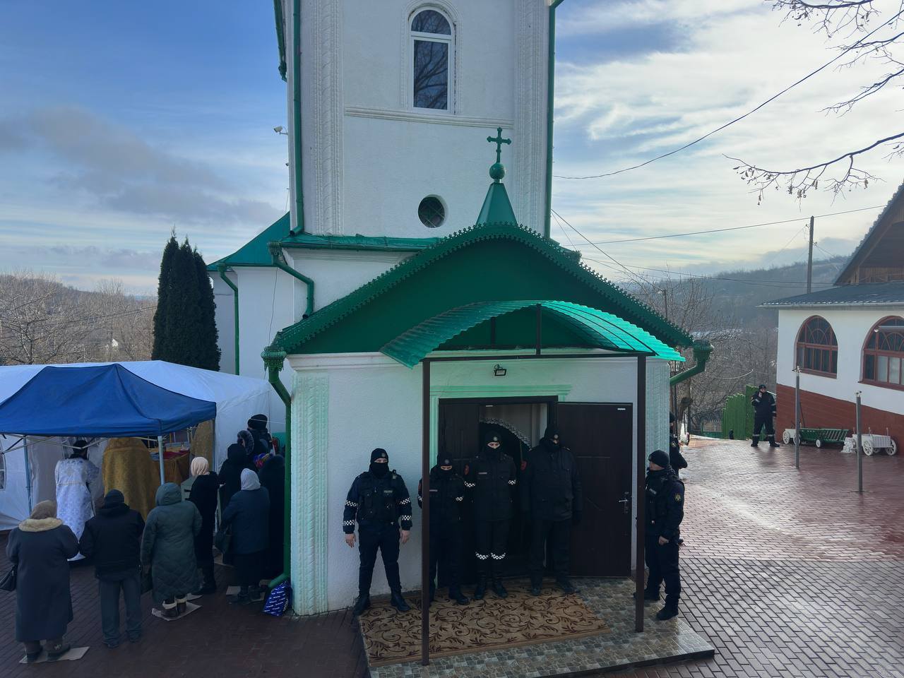 Din acest considerent, întrucât este zi de mare sărbătoare, în curtea bisericii s-a săvârșit o altă Sf. Liturghie de către arhim. KIRIL (Braguța), starețul Mănăstirii Hîrjauca, pentru creștini din localitate care stau în fața bisericii.