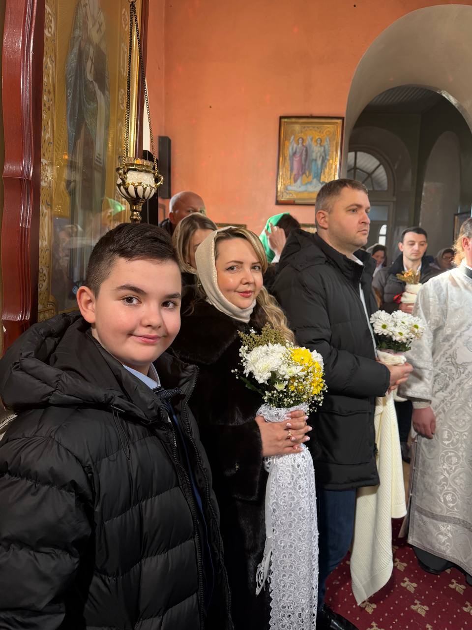 Menționăm faptul că mama copilului încreștinat, Dna Irina, este fica părintelui paroh al bisericii menționate, Prot. Ioan și Preoteasa Larisa GAJIM, fiind o perioadă și dirijor al Corului Catedralei Episcopale din mun. Ungheni.