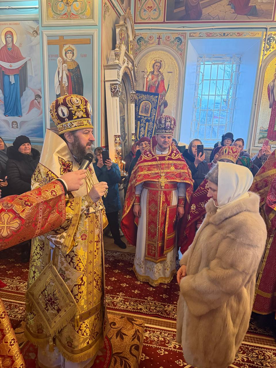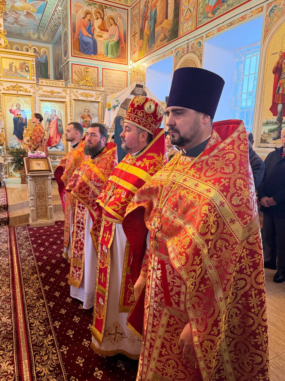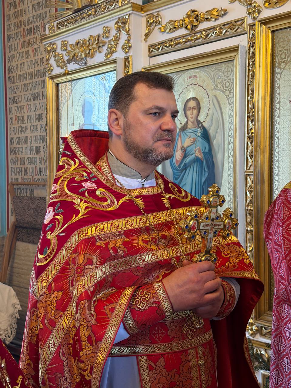 Apoi, Ierarhul la felicitat pe părintele parohul, Prot. Vitalie COZARI, adresându-i și înalte cuvinte de apreciere pentru toată munca și faptele rodnicii slujirii preoțești înfăptuite în cuprinsul parohiei, dar și-n afara ei, în cuprinsul Protopopiatului și a Eparhiei, dar și-n alte locuri unde a fost binecuvântat să slujească ți să se îngrijească duhovnicește de creștinii adunați.