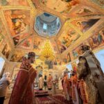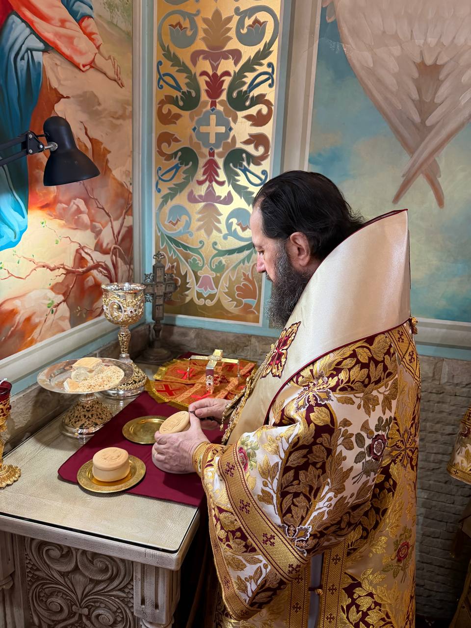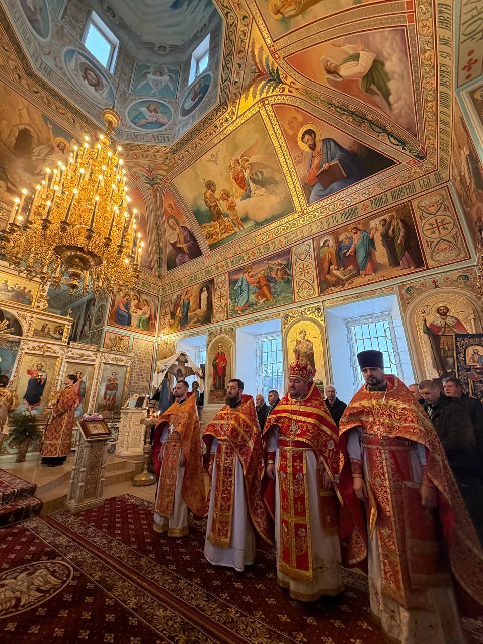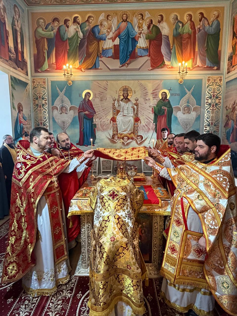 La Dumnezeiasca Liturghiea alături de Înaltpreasfințitul Arhiepiscop PETRU, au coliturghisit Prot Vadim COROSTINSCHI, Secretarul Eparhial, Prot. Vitalie COZARI, parohul bisericii „Sf. M. Mc. Gheorghe” din s. Milești; Prot. Dumitru RANGA, Protopopul Bisericilor din Raionul Nisporeni și-un sobor de preoți și diaconi.