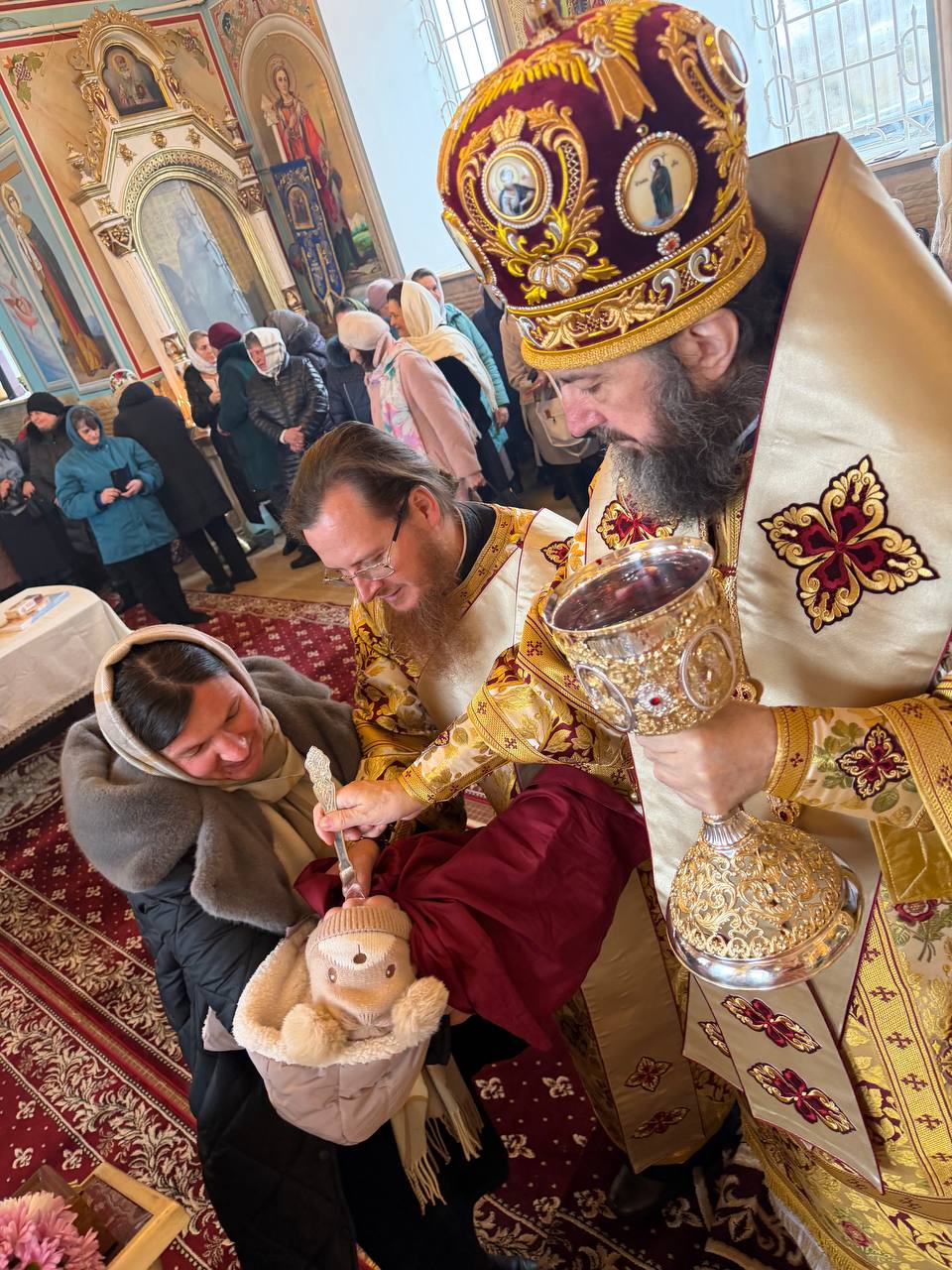 După rugăciunea Tatăl nostru…, Înaltpreasfinția Sa a împărtășit copiii și credincioșii ce s-au pregătit pentru primirea Sfintei Împărtășanii.