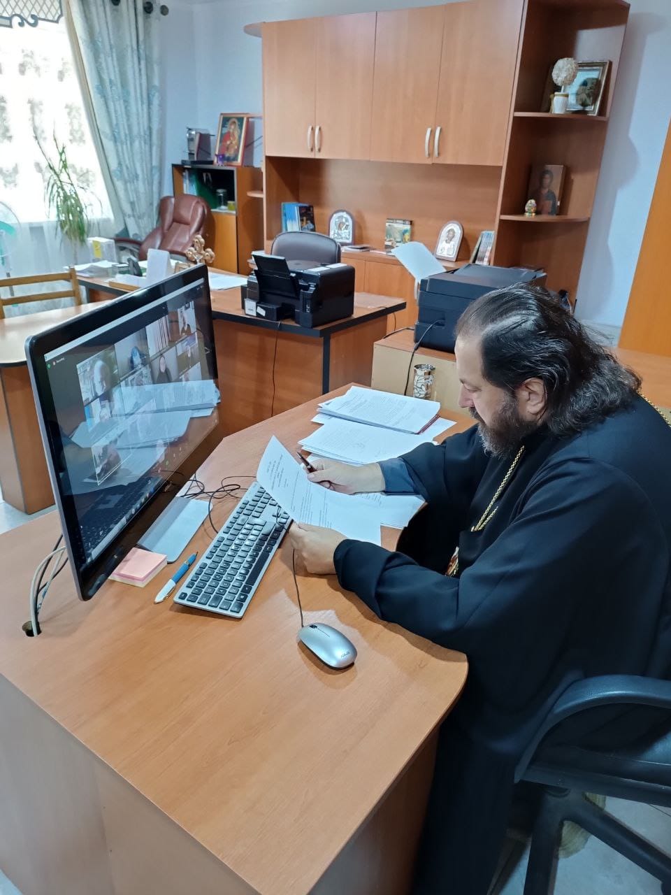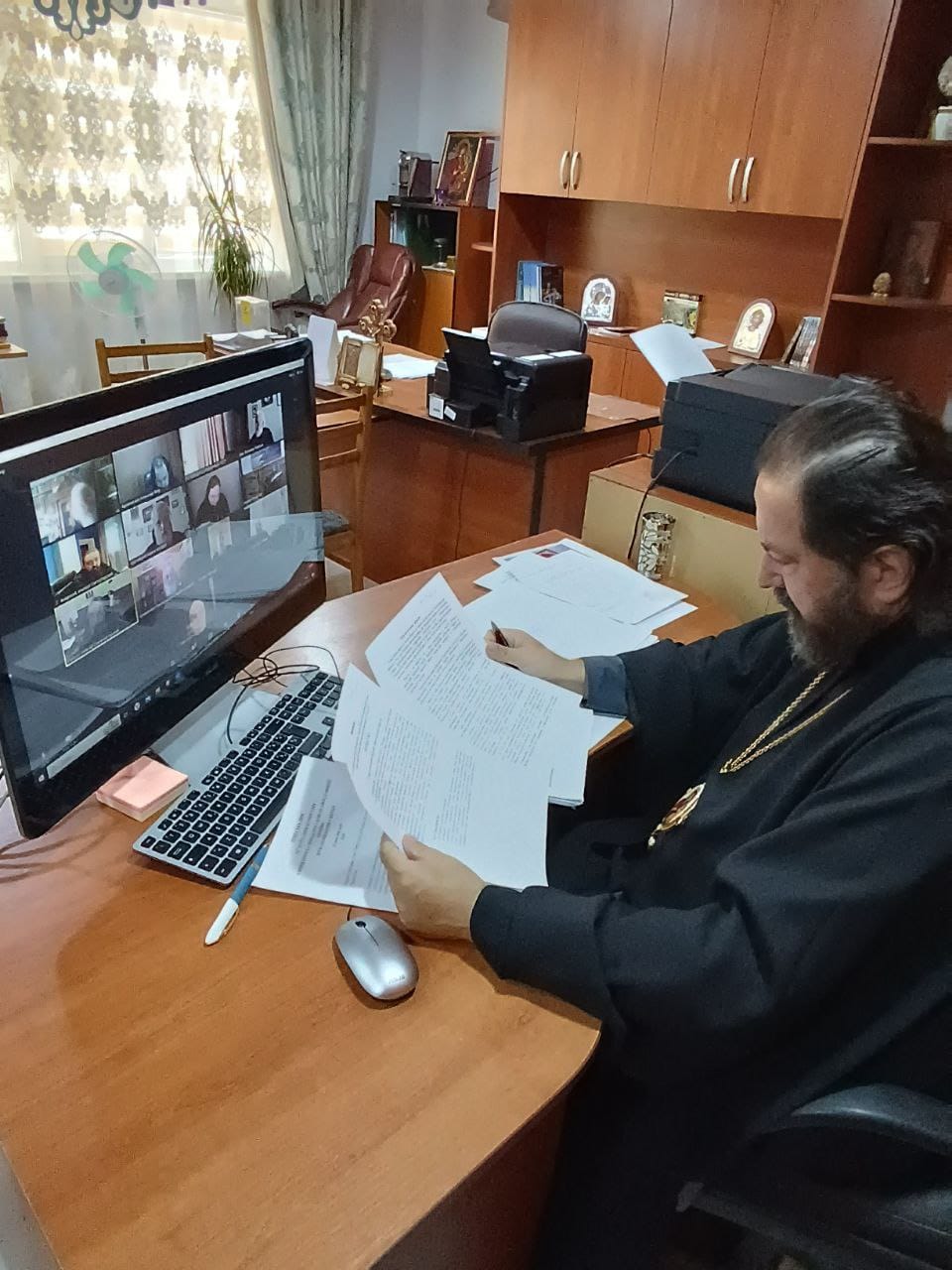 Înaltpreasfinţitul PETRU, Arhiepiscop de Ungheni şi Nisporeni, membru activ al Comisiei menţionate, a luat parte la şedinţa de lucru, de asemenea on-line, fiind prezent în Centrul Eparhial.