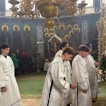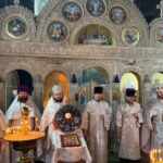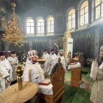 Apoi, Înaltpreasfinţia Sa, înconjurat de soborul de preoţi şi diaconi, slujitori ai Catedralei Episcopale, în frunte cu prot. Vadim COROSTINSCHI, Secratarul Eparhial, a oficiat Dumnezeiasca Liturghie.