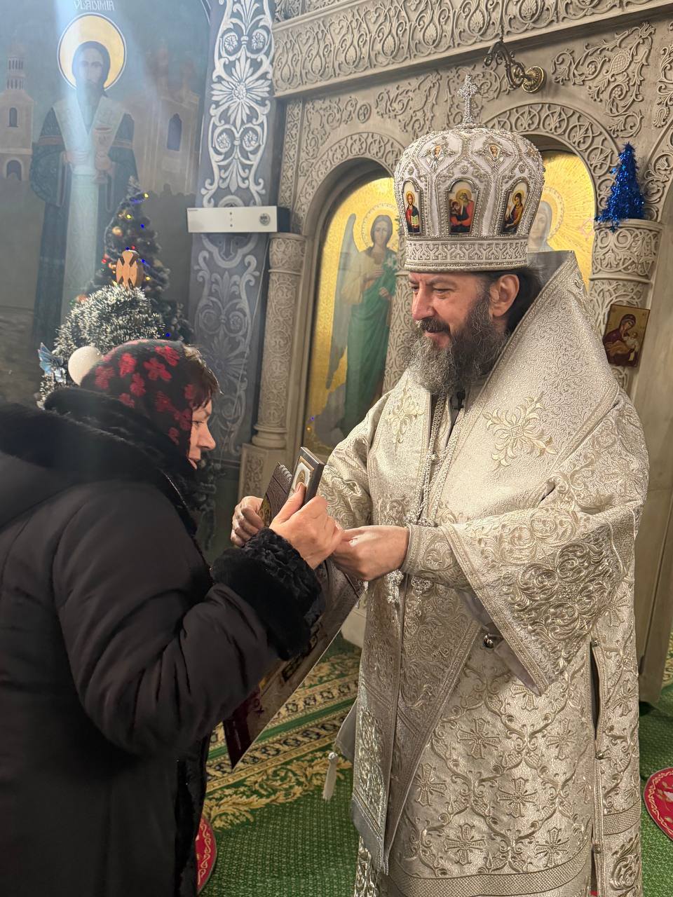 La finele Slujbei Vecerniei, Ierarhul, împreună cu soborul de preoţi slujitori, au cântat solemn troparul și condacul Naşterii Domnului în fața icoanei praznicale, după care Înaltpreasfinția Sa a ţinut un cuvânt ziditor de suflet, la finele căruia a invitat toţi creştinii la Slujba Privegherii şi Sfânta Liturghie din noaptea Naşterii Domnului, felicitând totodată și pe cei omagiați.
