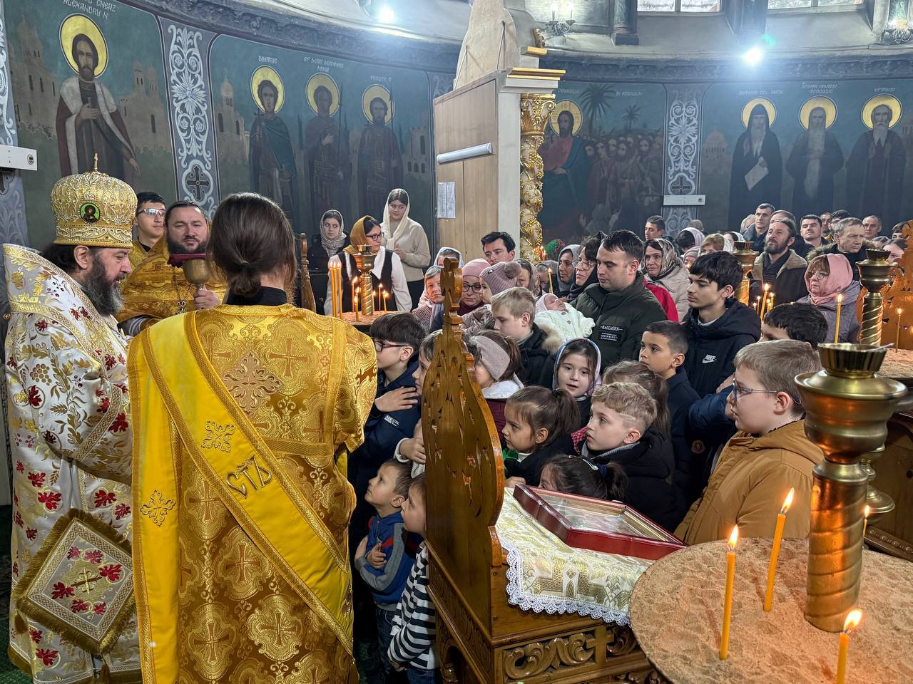 La sfârșitul sfintei liturghii, Ierarhul i-a felicitat pe credincioșii prezenți, dorindu-le o săptămână binecuvântată.