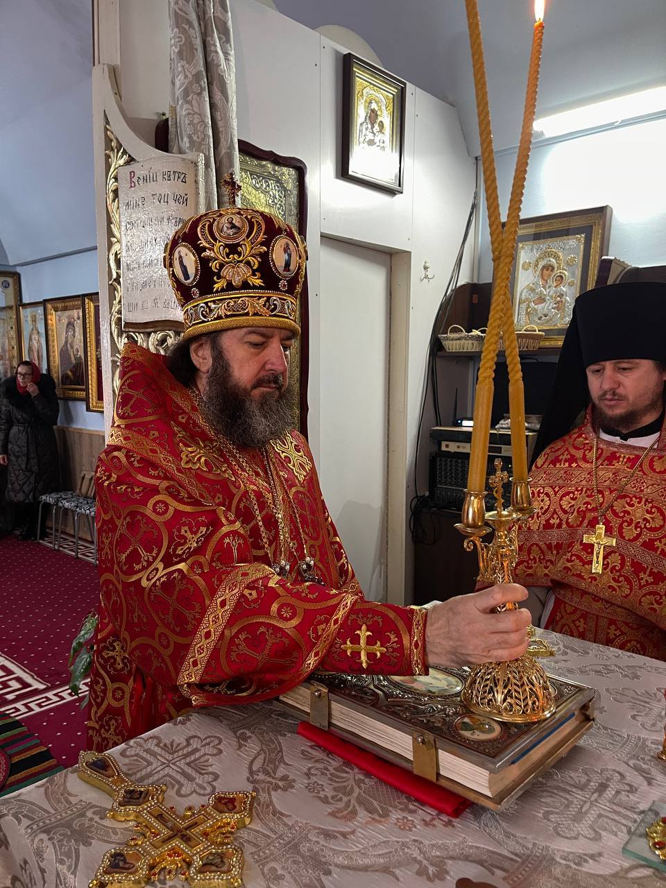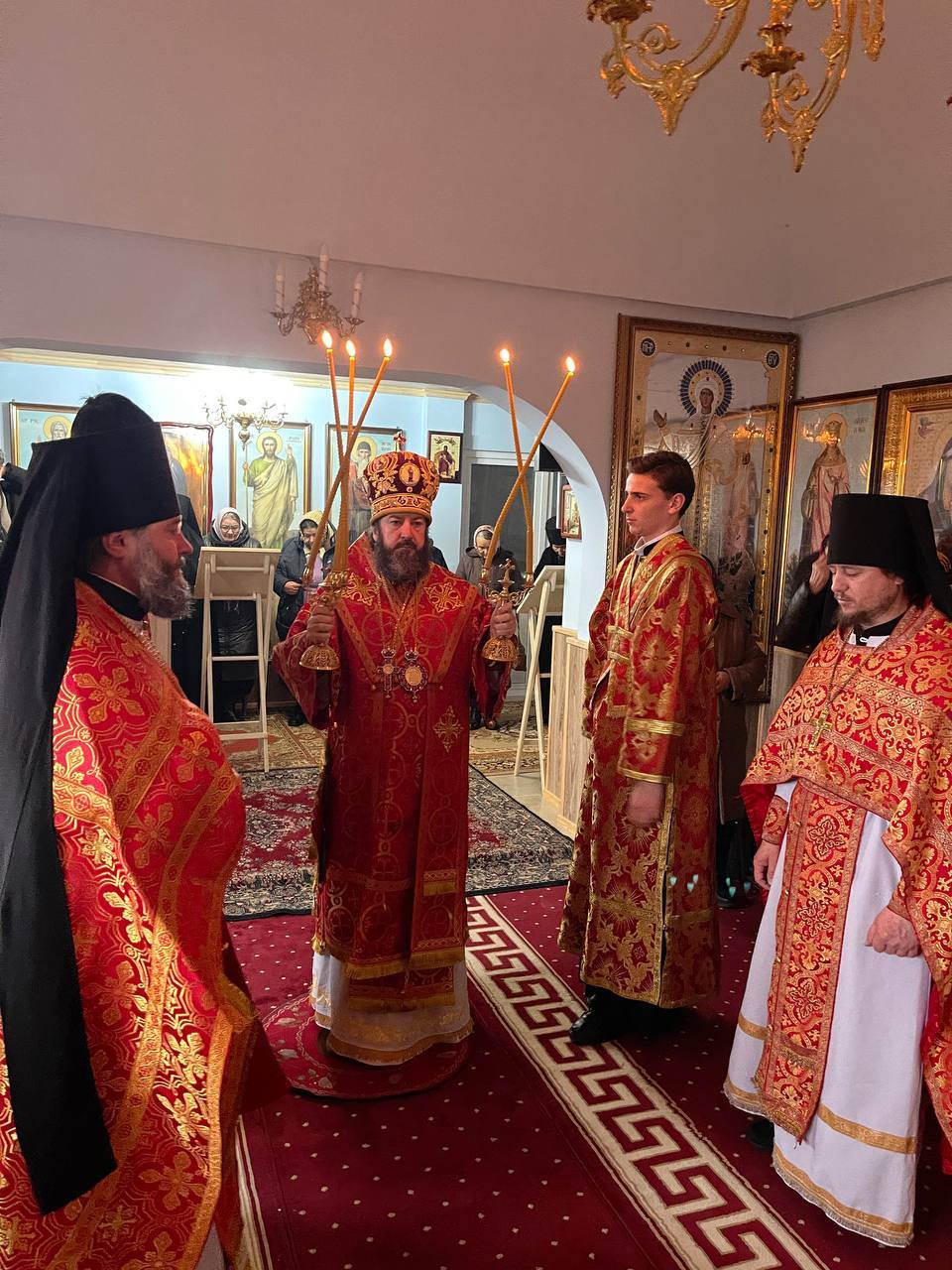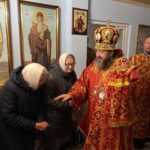 Înaltpreasfinția Sa a fost întâmpinat de către stareţa mănăstirii, Egumena ARSENIA (Bordeniuc), dimpreună cu obştea monahală, dar și de credincioșii prezenți ce au venit s-o cinstească pe Sf. M. Mc-ță Varvara.
