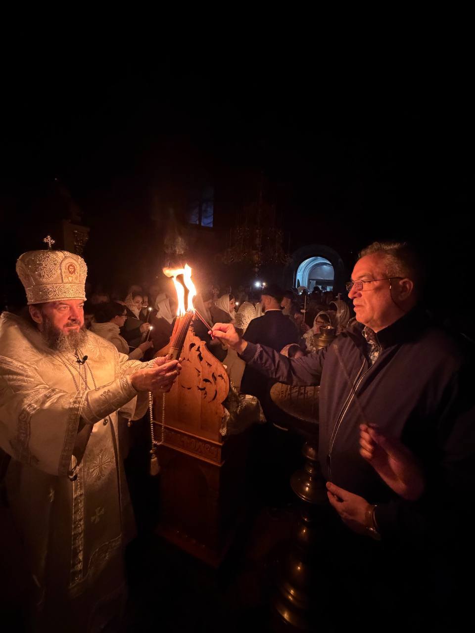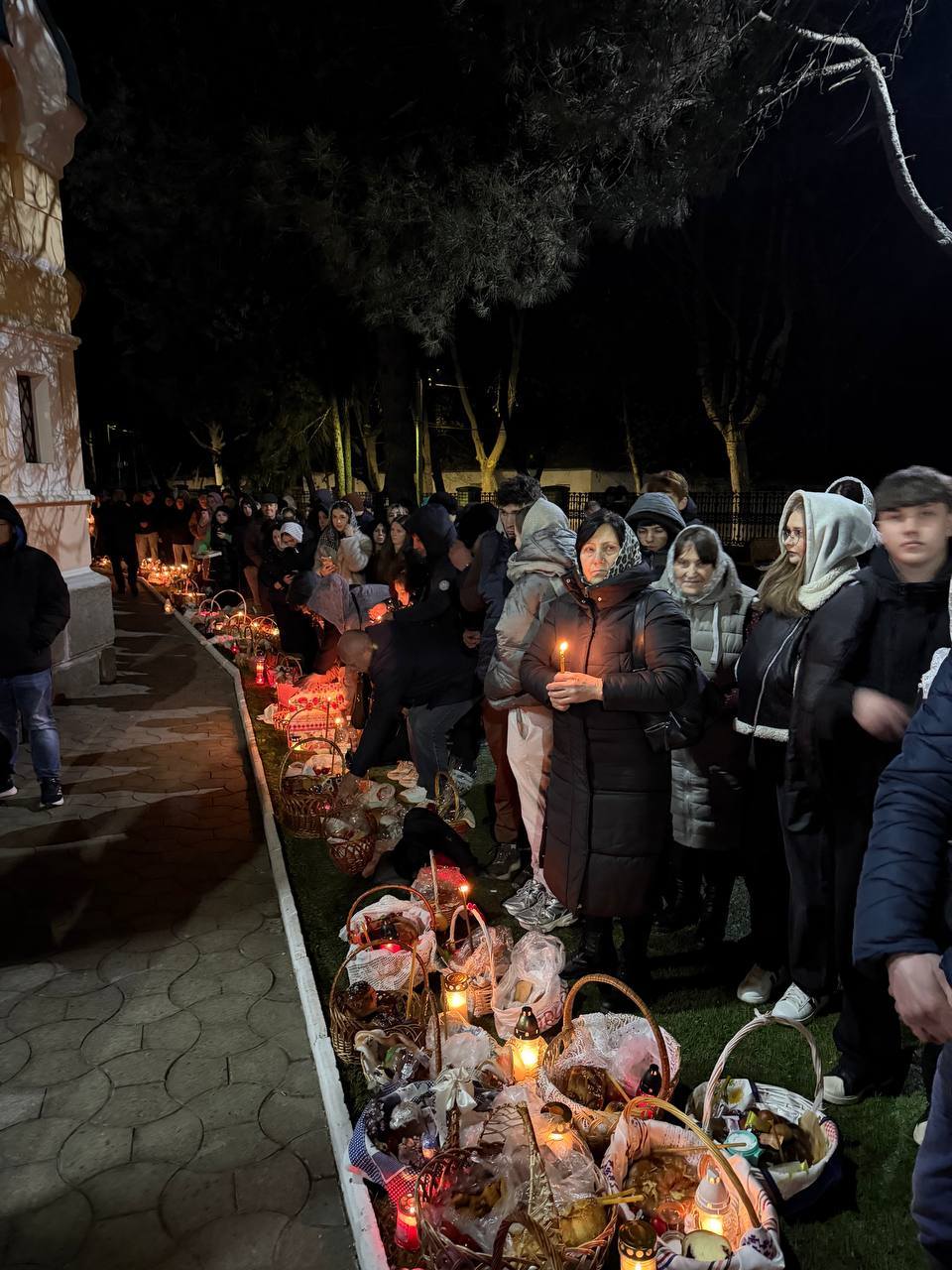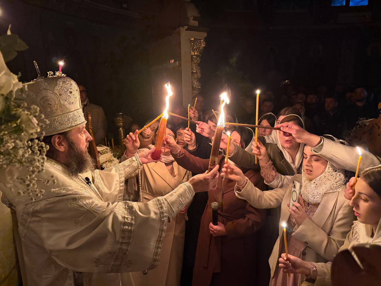 Apoi, conform tradiției și rânduielii bisericești, Înaltpreasfinția Sa a împărțit Lumina Sfântă de la Ierusalim credincioșilor prezenți, făcându-se înconjorul Catedralei, după care s-a dat binecuvântare cu cântările Învierii, la Slujba Utreniei.