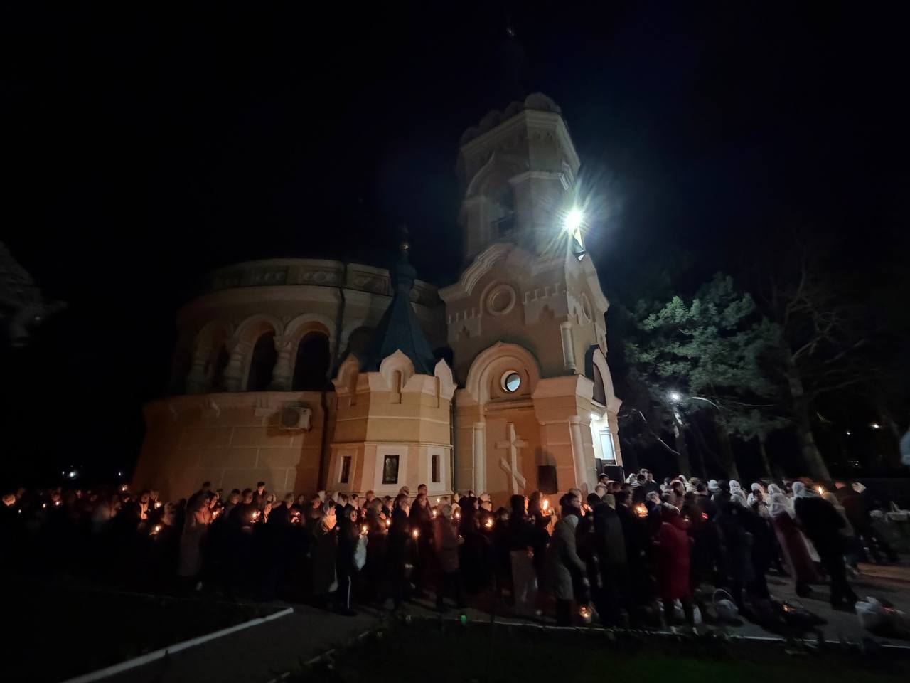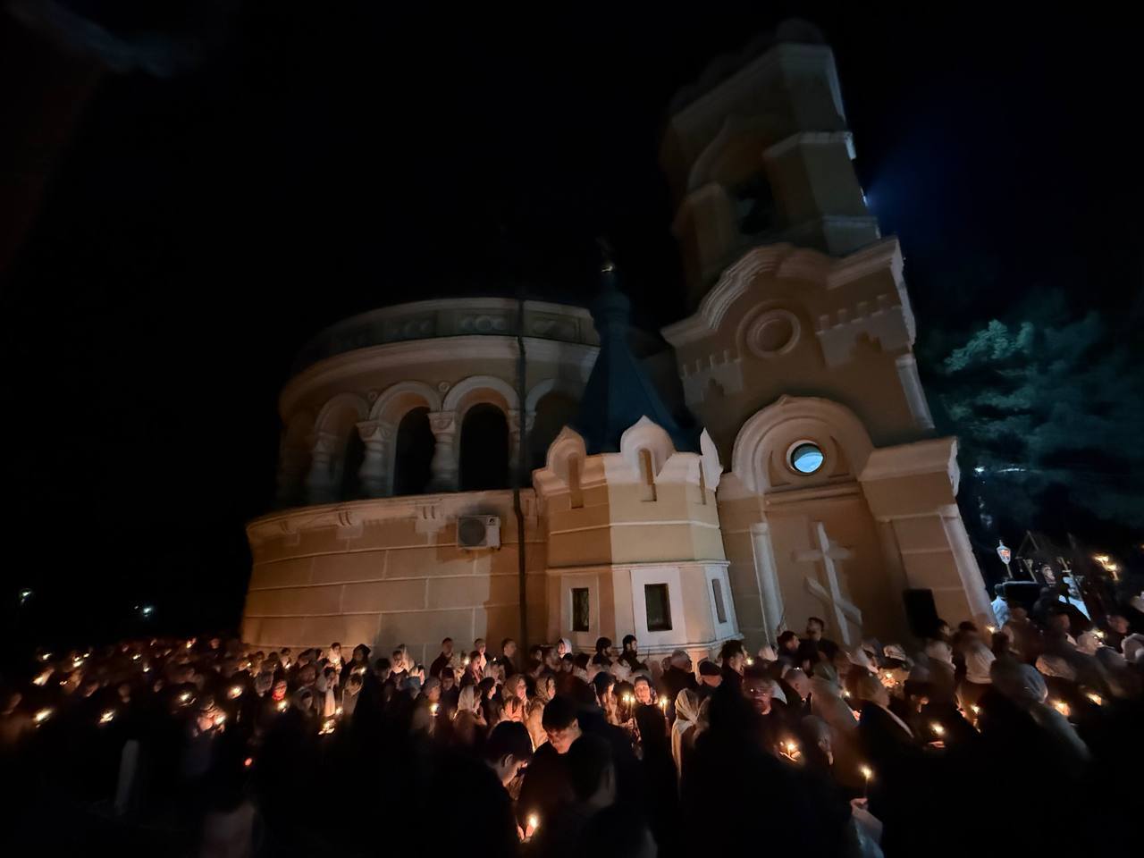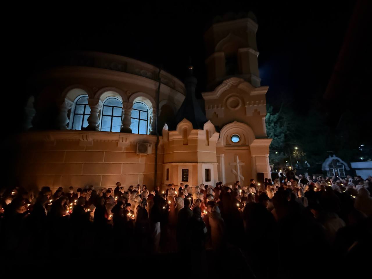 Apoi, conform tradiției și rânduielii bisericești, Înaltpreasfinția Sa a împărțit Lumina Sfântă de la Ierusalim credincioșilor prezenți, făcându-se înconjorul Catedralei, după care s-a dat binecuvântare cu cântările Învierii, la Slujba Utreniei.