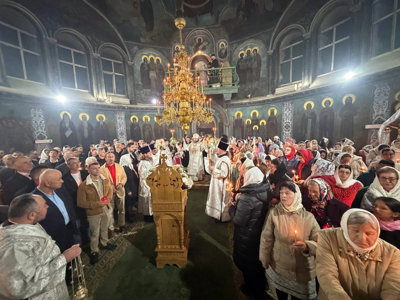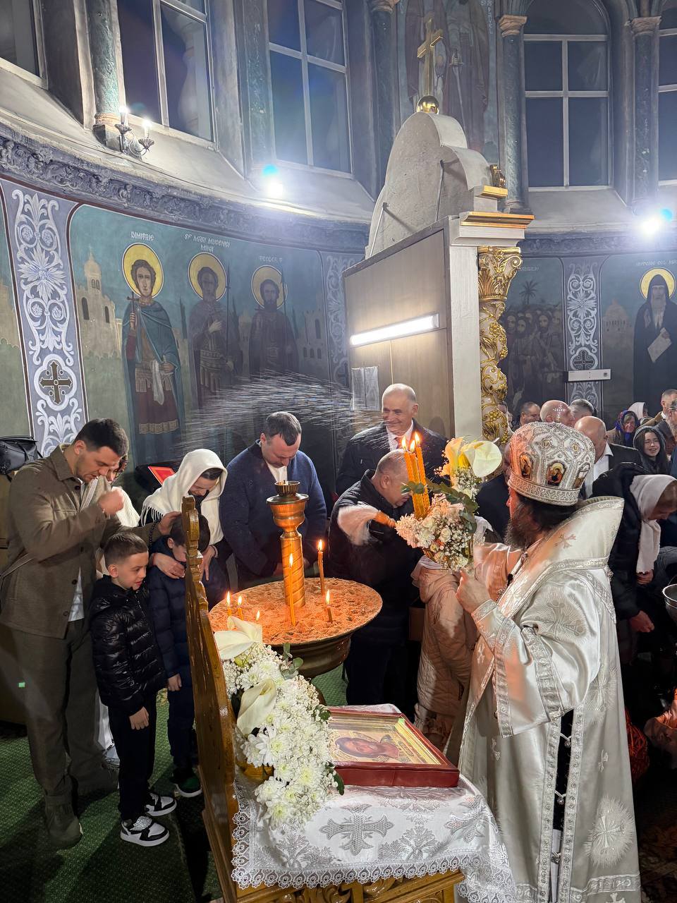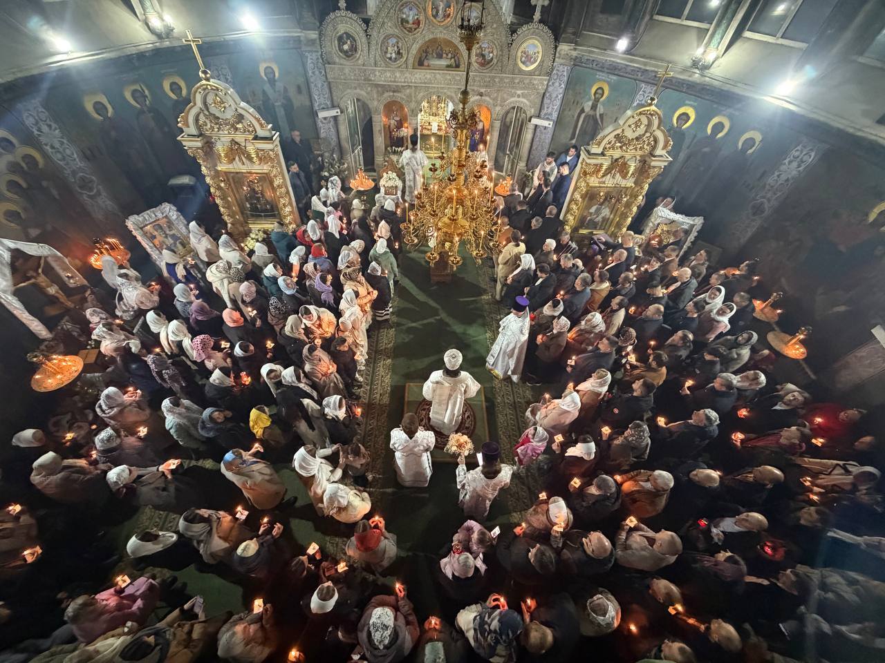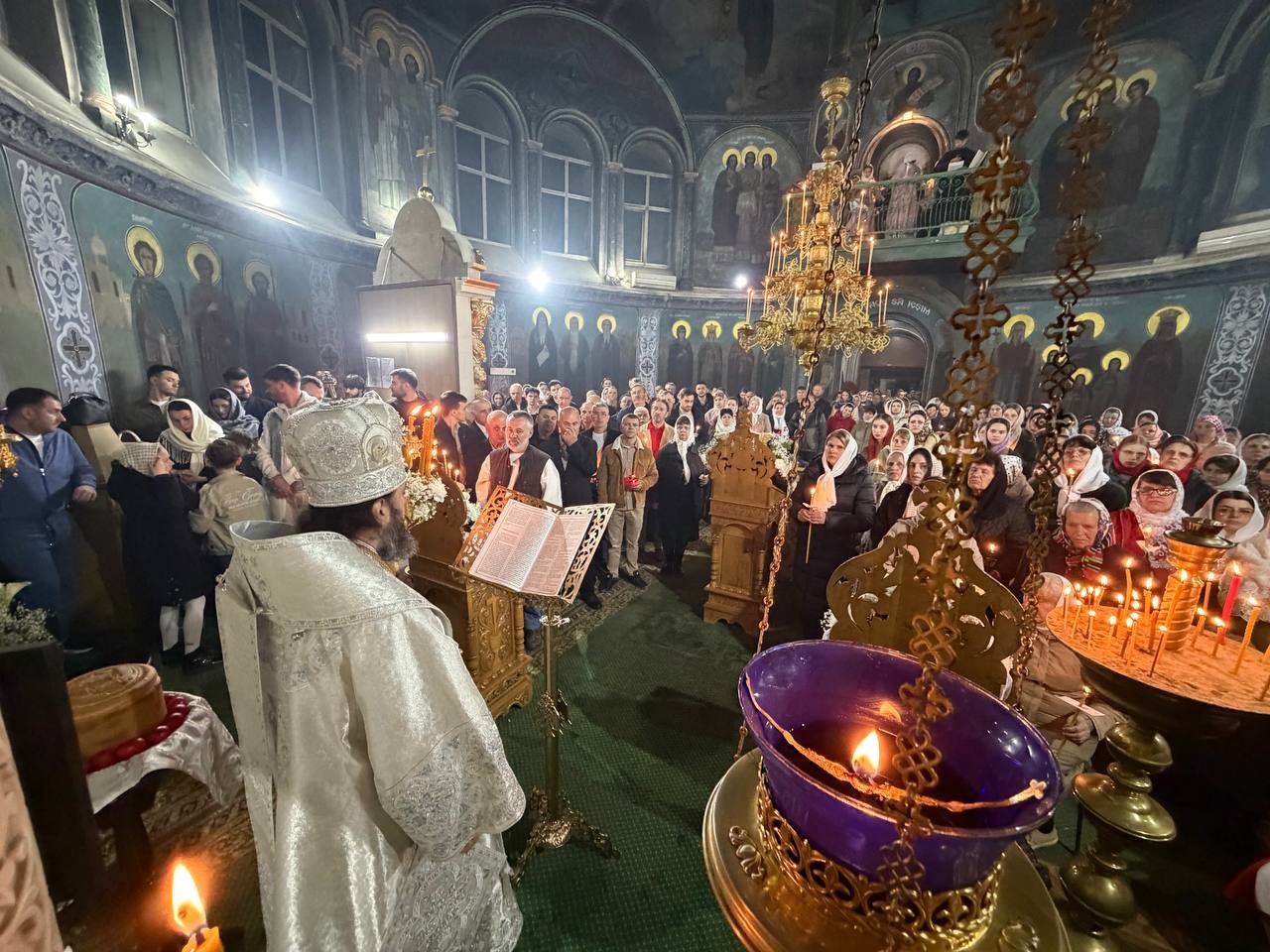 La miezul nopţii, Ierarhul a fost întâmpinat de slujitorii Catedralei Episcopale şi de credincioşii prezenţi.