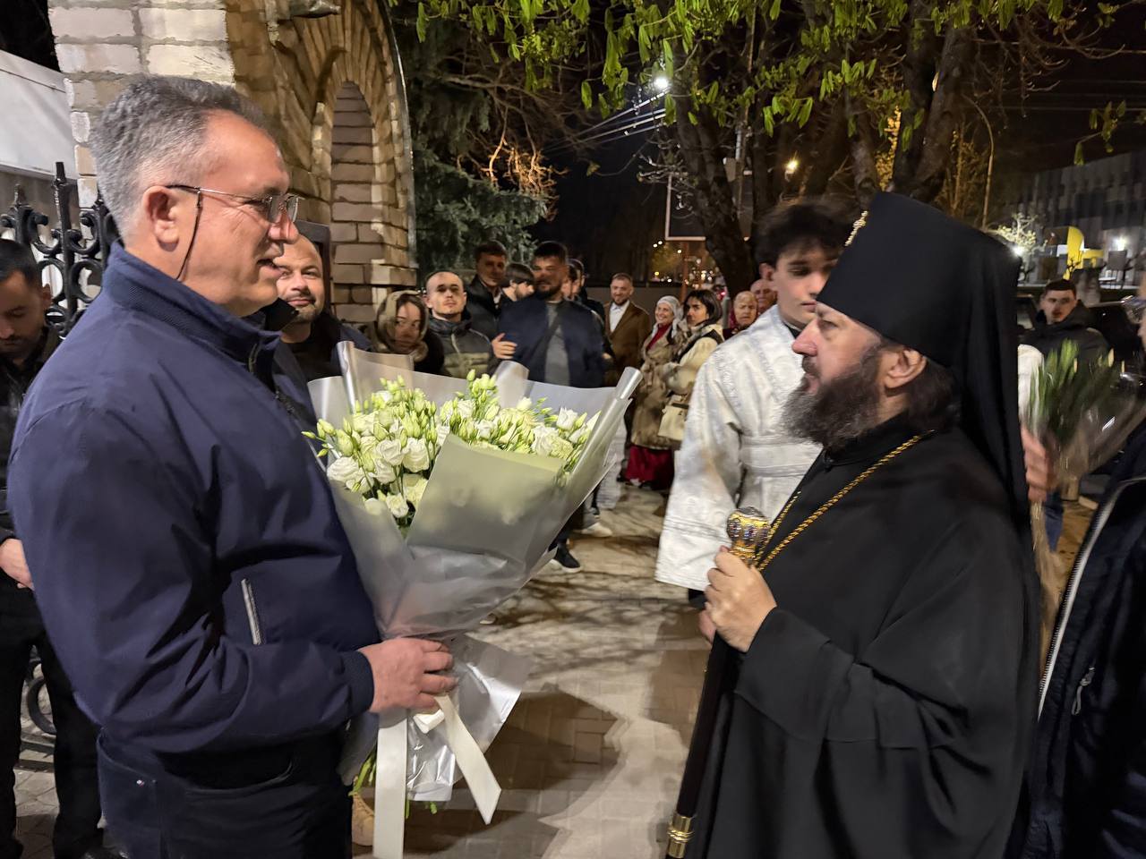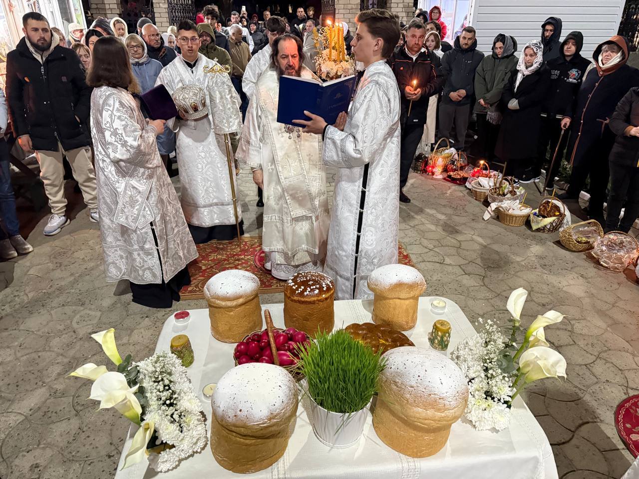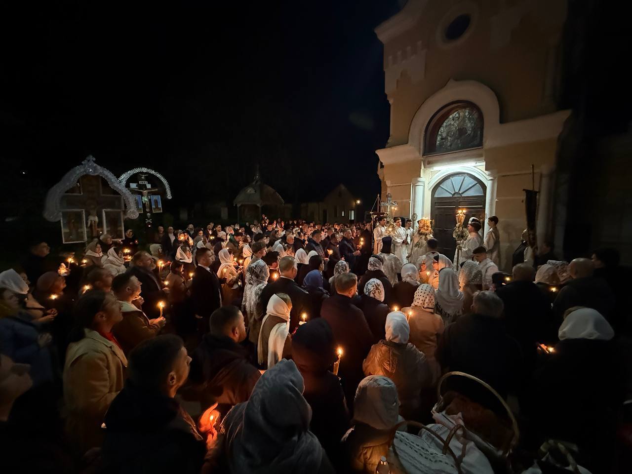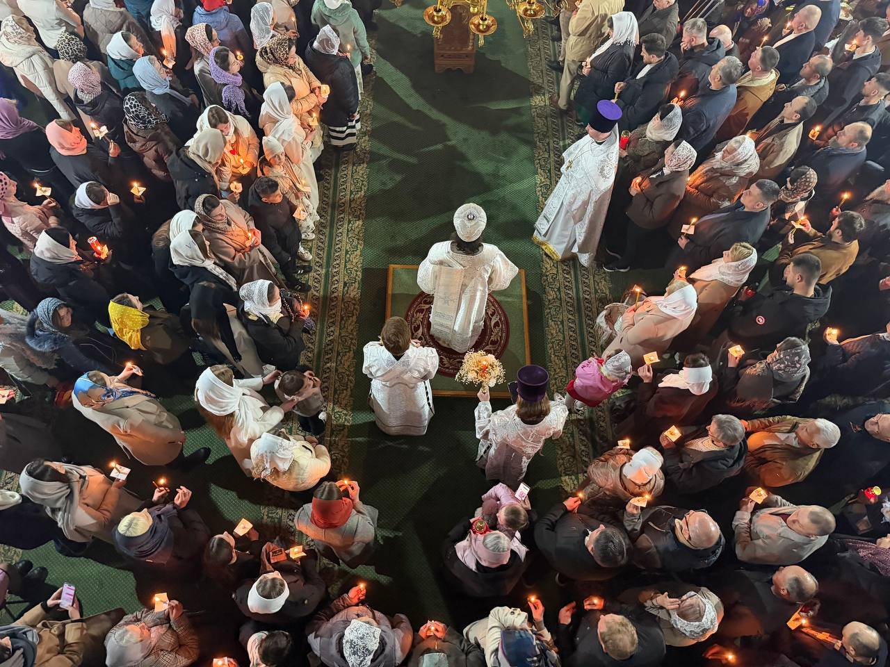 La miezul nopţii, Ierarhul a fost întâmpinat de slujitorii Catedralei Episcopale şi de credincioşii prezenţi.