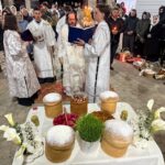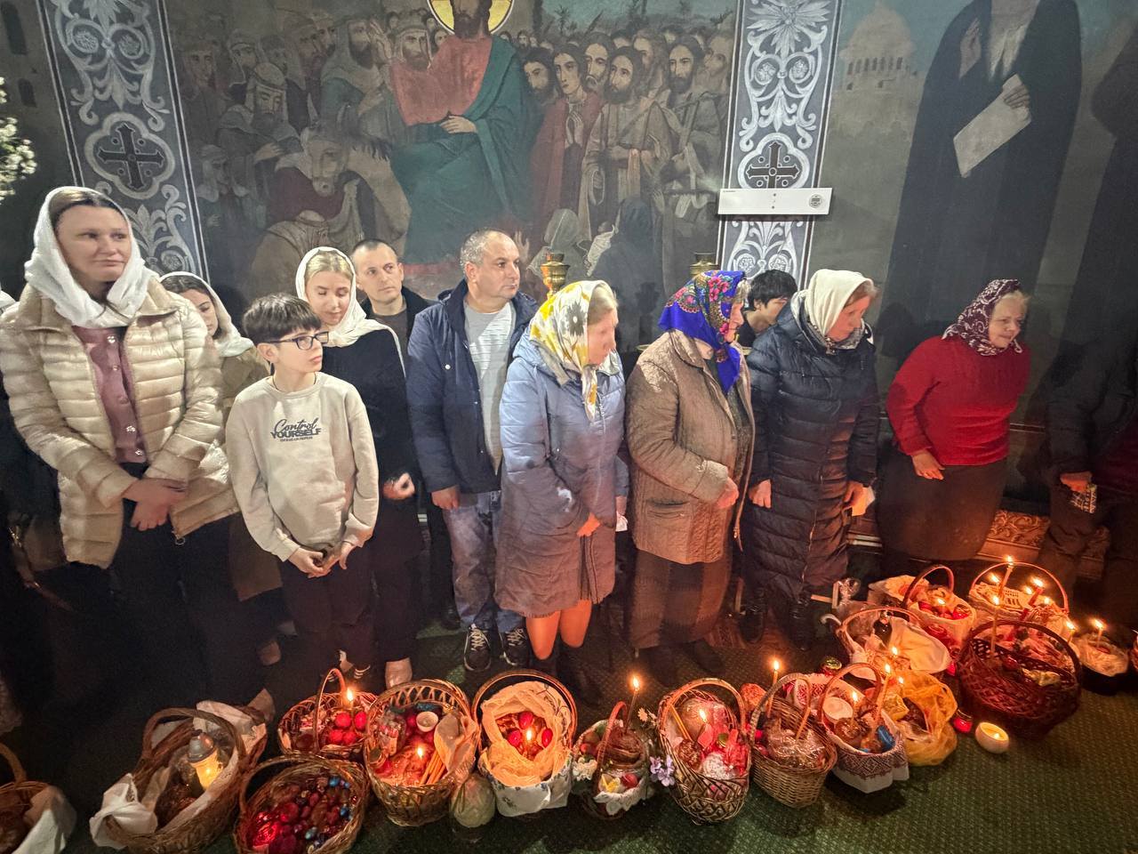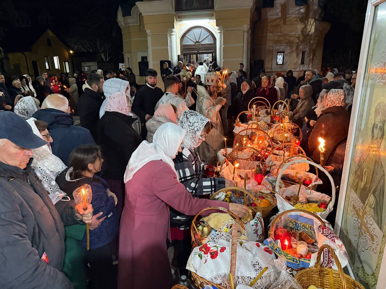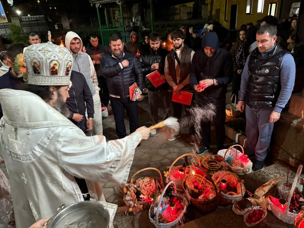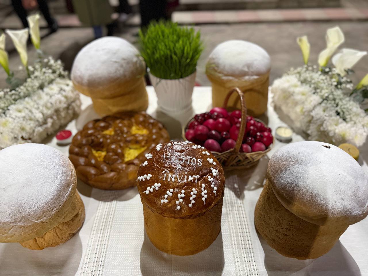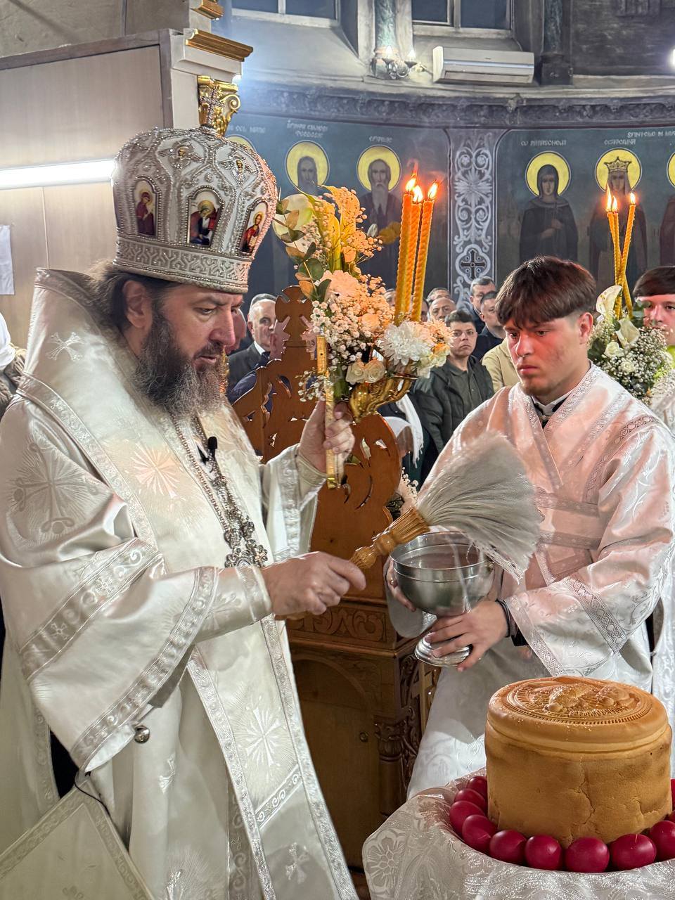 Spre sfârşitul Sfintei Liturghii, Înaltpreasfinţia Sa a citit rugăciunea de sfinţire a artosului şi a prinoaselor (brânză, ouă, carne), iar după aceasta a mers de a stropit bucatele credincioşilor prezenţi, care vor fi consumate la masa pascală.
