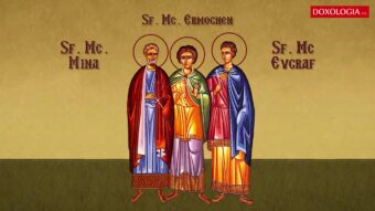 Domnul însă nu i-a lăsat, ci pe amândoi mucenicii i-a vindecat şi i-a arătat înaintea împăratului şi a poporului, spre mirarea tuturor, încât un om din popor, Evgraf, s-a lepădat de zei şi L-a mărturisit pe Hristos. Împăratul a luat sabia şi, de mânie, l-a tăiat în bucăţi, şi a poruncit ca Sfinţilor Mina şi Ermoghen să le fie tăiat capul, mergând, astfel, toţi trei la Domnul pe care Îl propovăduiseră.