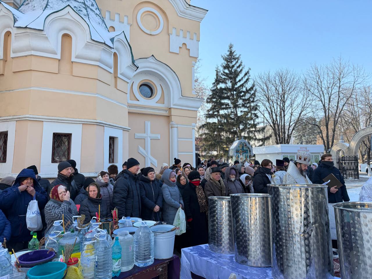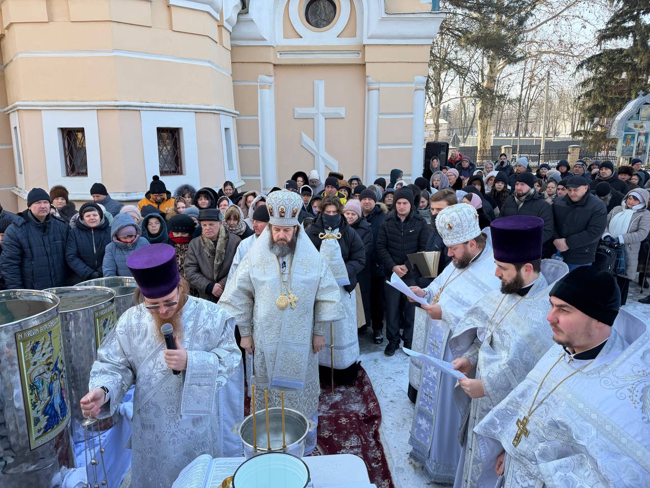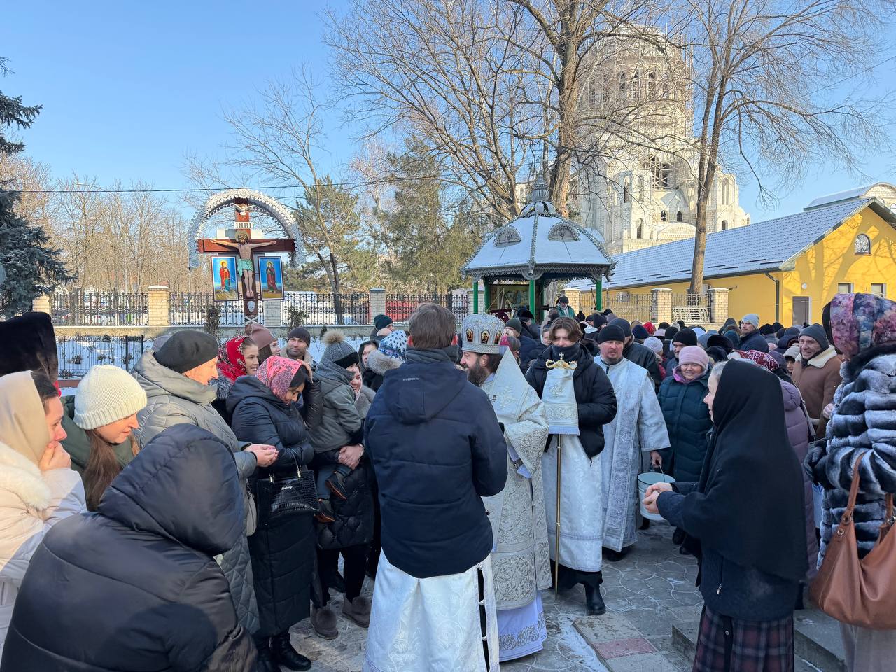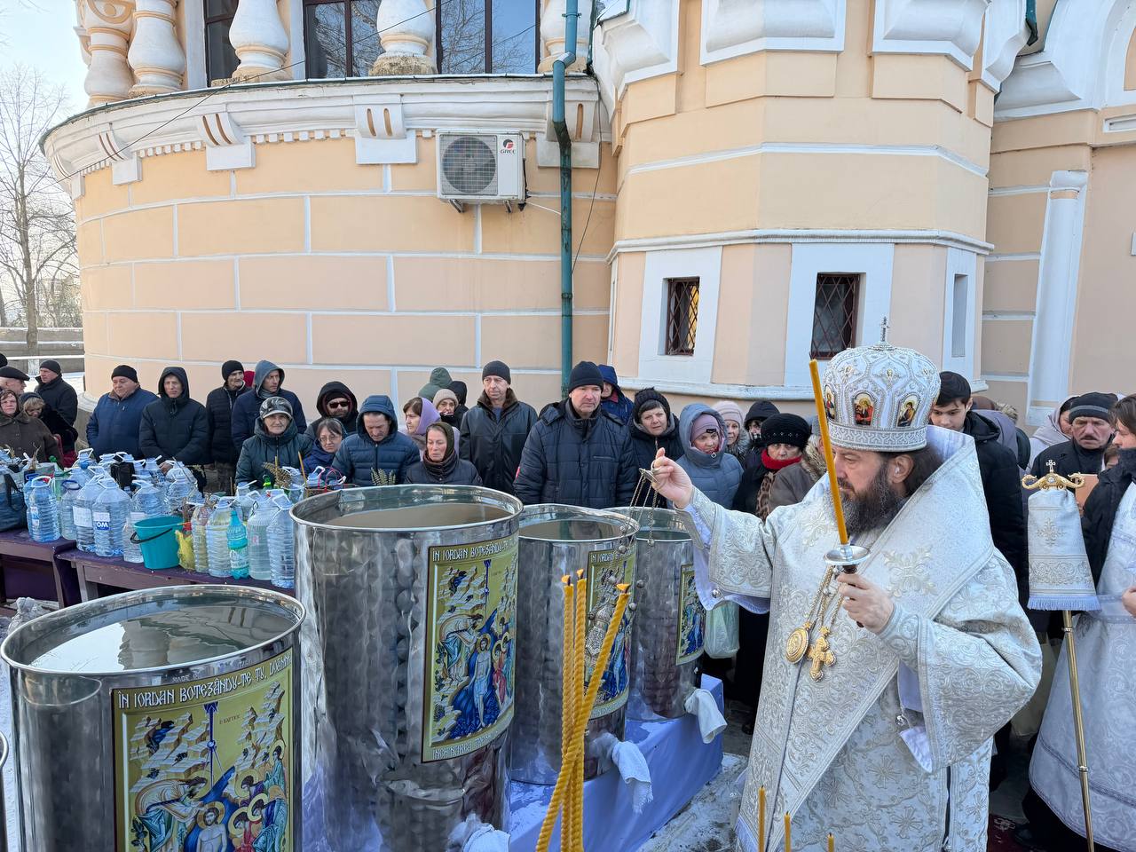 După oficierea Sfintei Liturghii, Ierarhul împreună cu slujitori şi creştinii Catedralei Episcopale au mers în procesiune la fântâna din curtea Catedralei, unde s-a săvârşit Sfinţirea cea Mare a Apei.