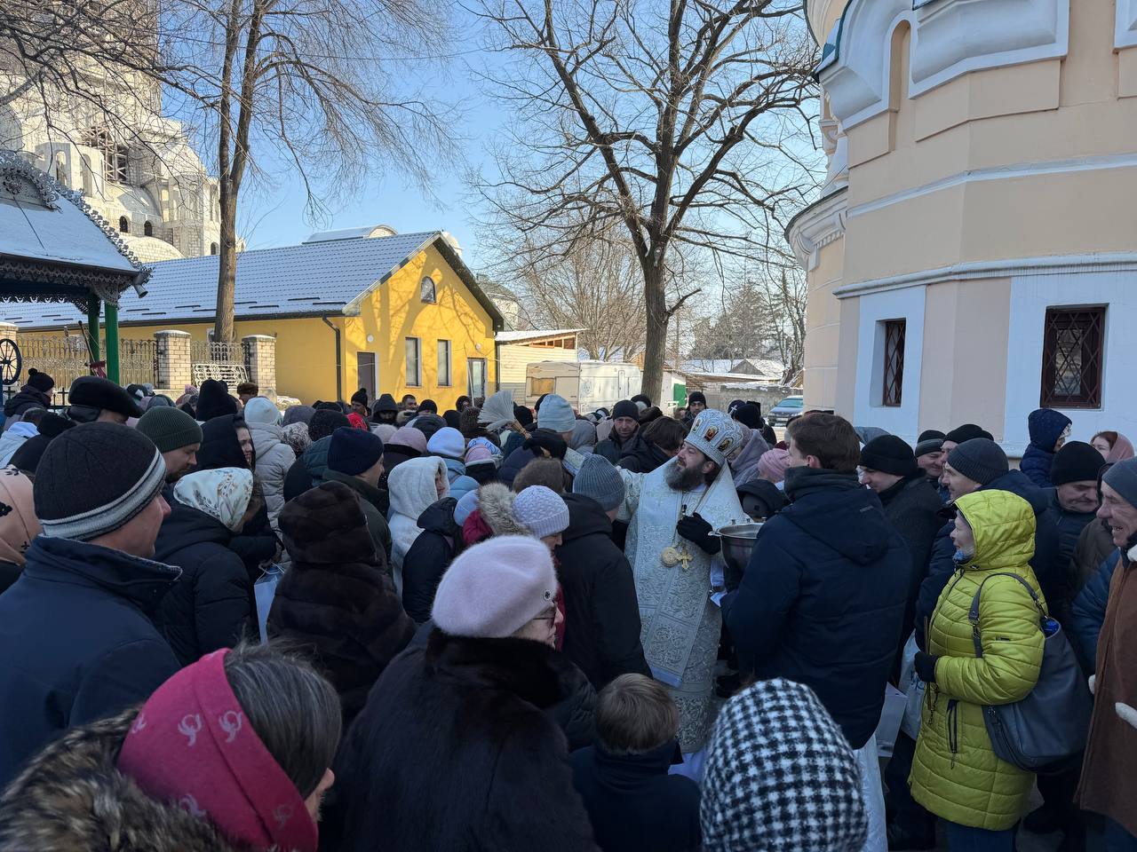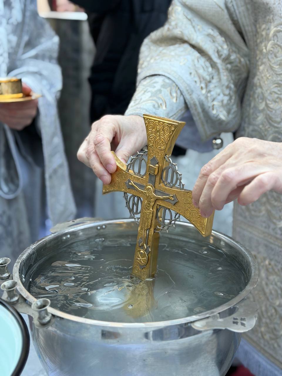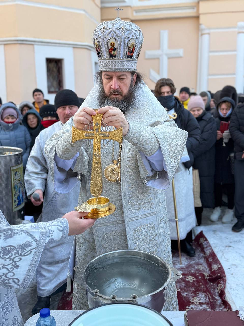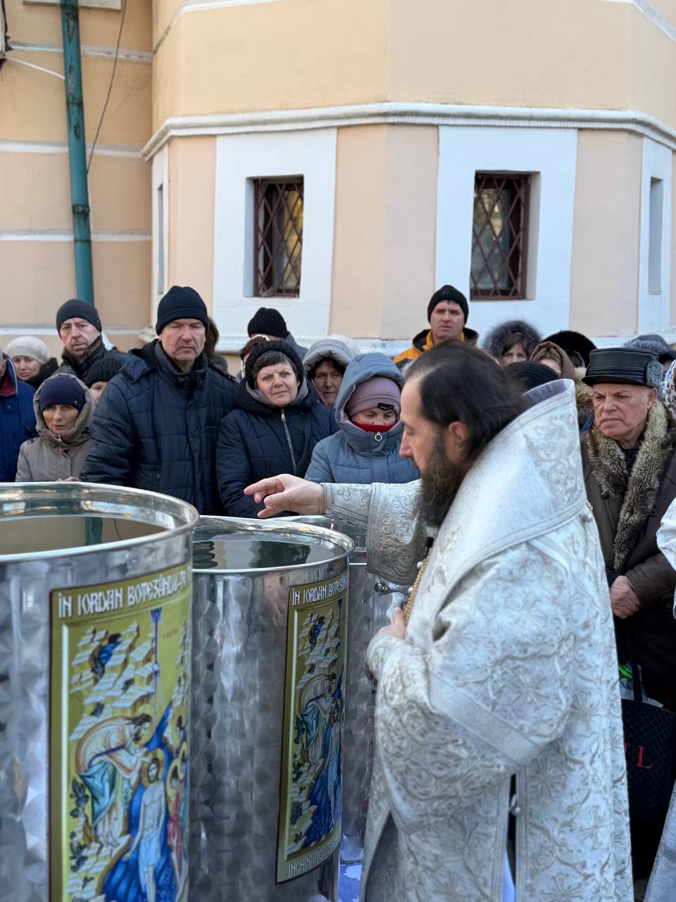 După oficierea Sfintei Liturghii, Ierarhul împreună cu slujitori şi creştinii Catedralei Episcopale au mers în procesiune la fântâna din curtea Catedralei, unde s-a săvârşit Sfinţirea cea Mare a Apei.