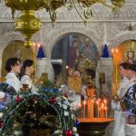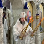 La cântarea Polileului, au fost cântate mărimuri-le Sărbătorii, după care Ierarhul a miruit pe toți credincioșii prezenți.