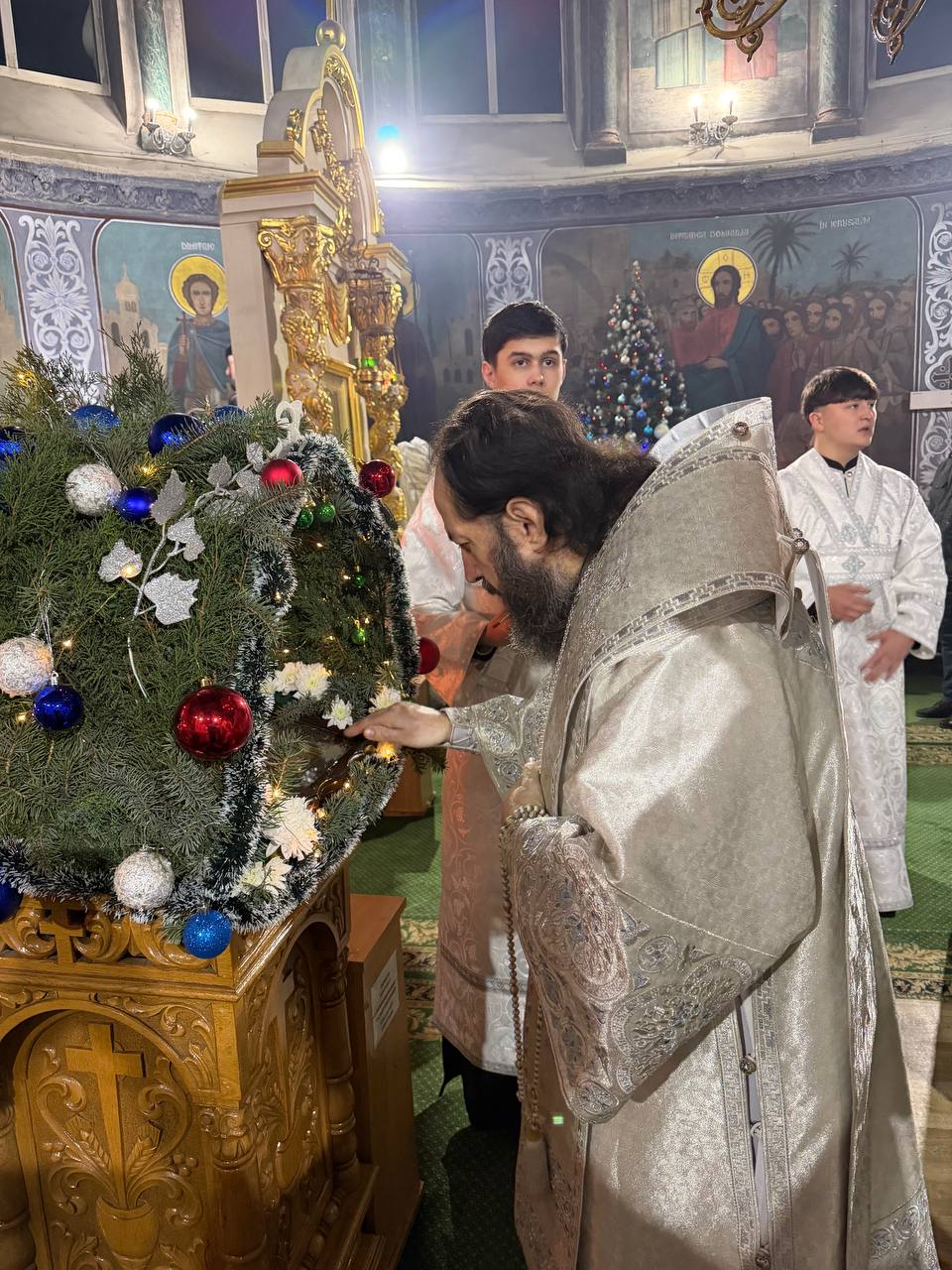 În această seară minunată, când toată făptura se bucură şi prăznuieşte, când păstorii primesc vestea Naşterii Pruncului Iisus de la îngeri, în Catedrala Episcopală sărbătorirea Naşterii Domnului, la Slujba Privegherii Înaltpreasfinția Sa a fost însoţit în slujire de toți slujitorii Catedralei Episcopale, în frunte cu Secretarul Eparhial, Protoiereul Vadim COROSTINSCHI.