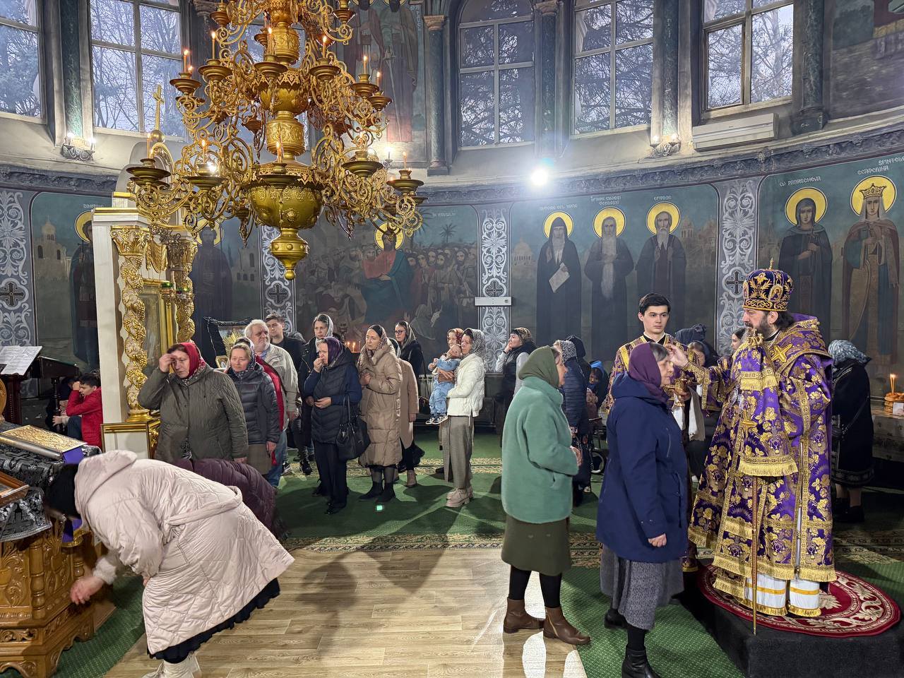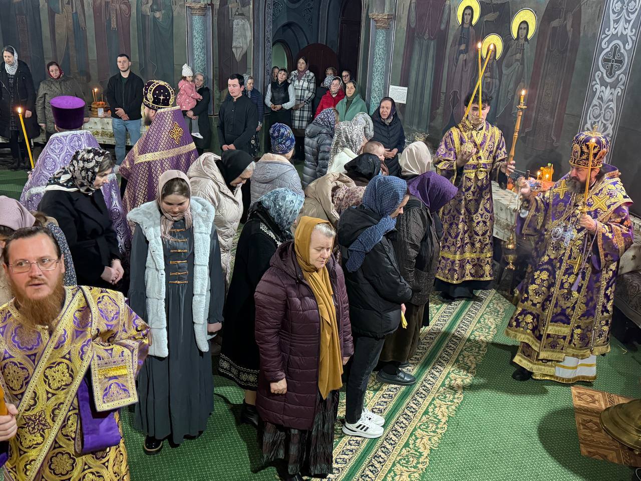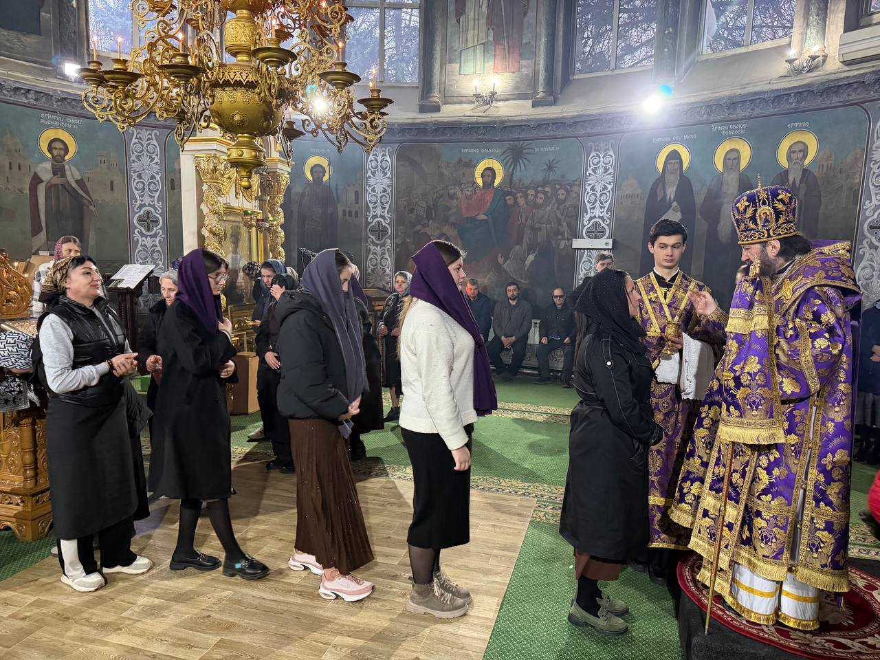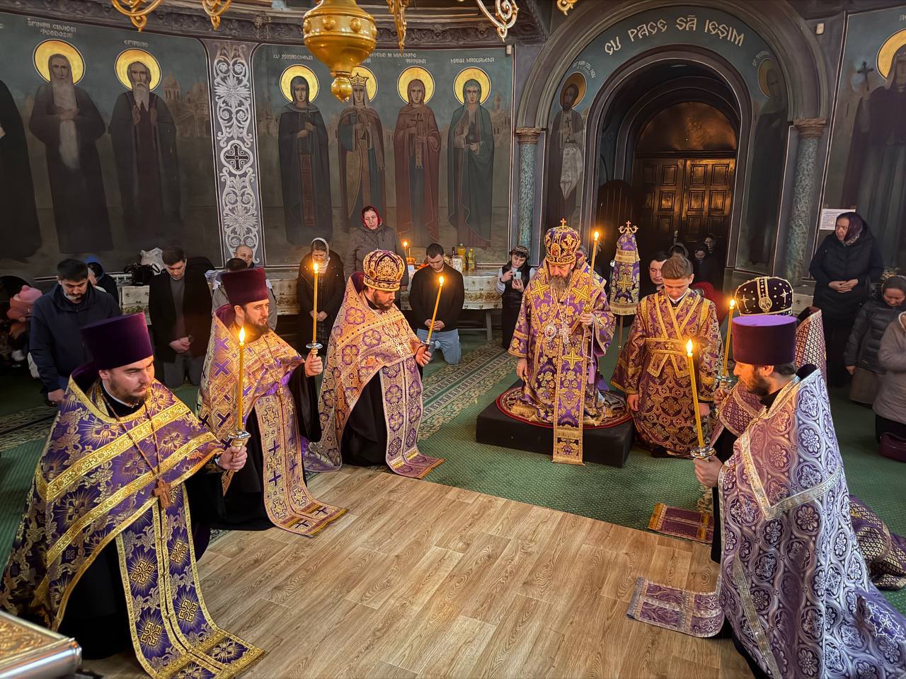 După cântarea Polileului, Ierarhul, dimpreună cu slujitorii, au îngenuncheat la umilincioasa cântare a triodului „Ușile pocăinței…”.