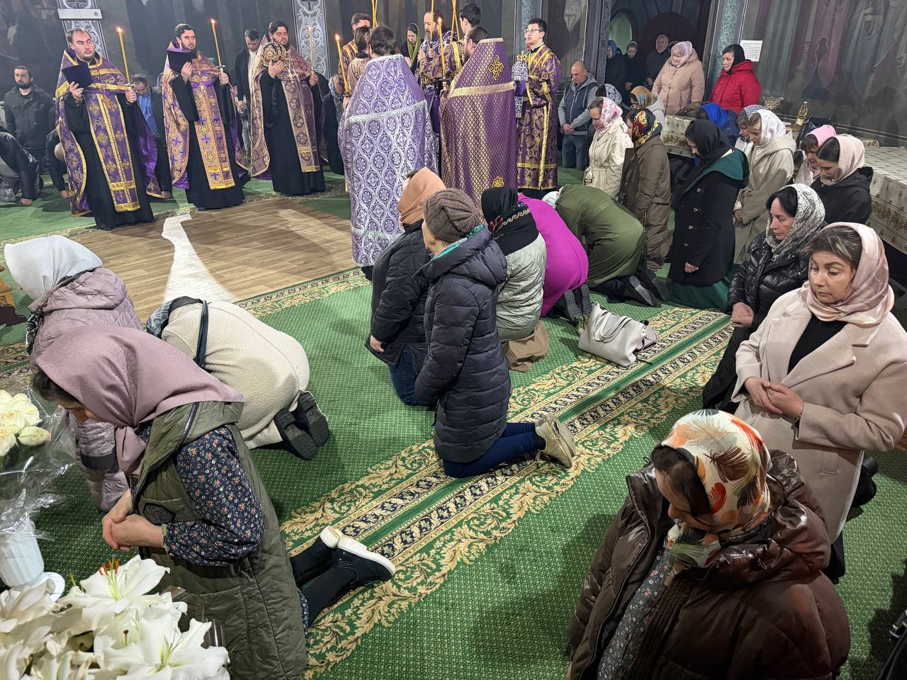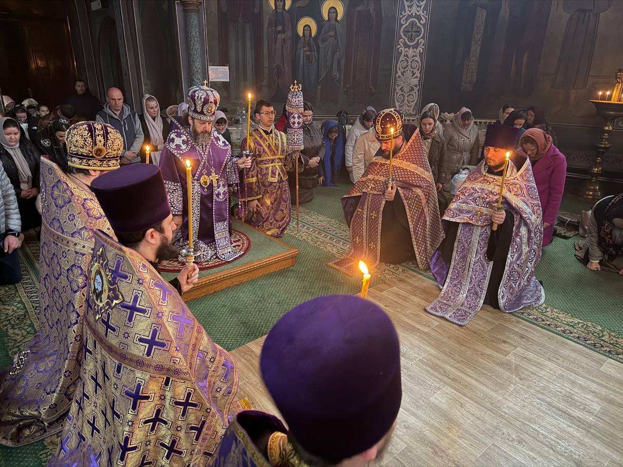 După cântarea Polileului, Ierarhul, dimpreună cu slujitorii, au îngenuncheat la umilincioasa cântare a triodului „Ușile pocăinței…”.